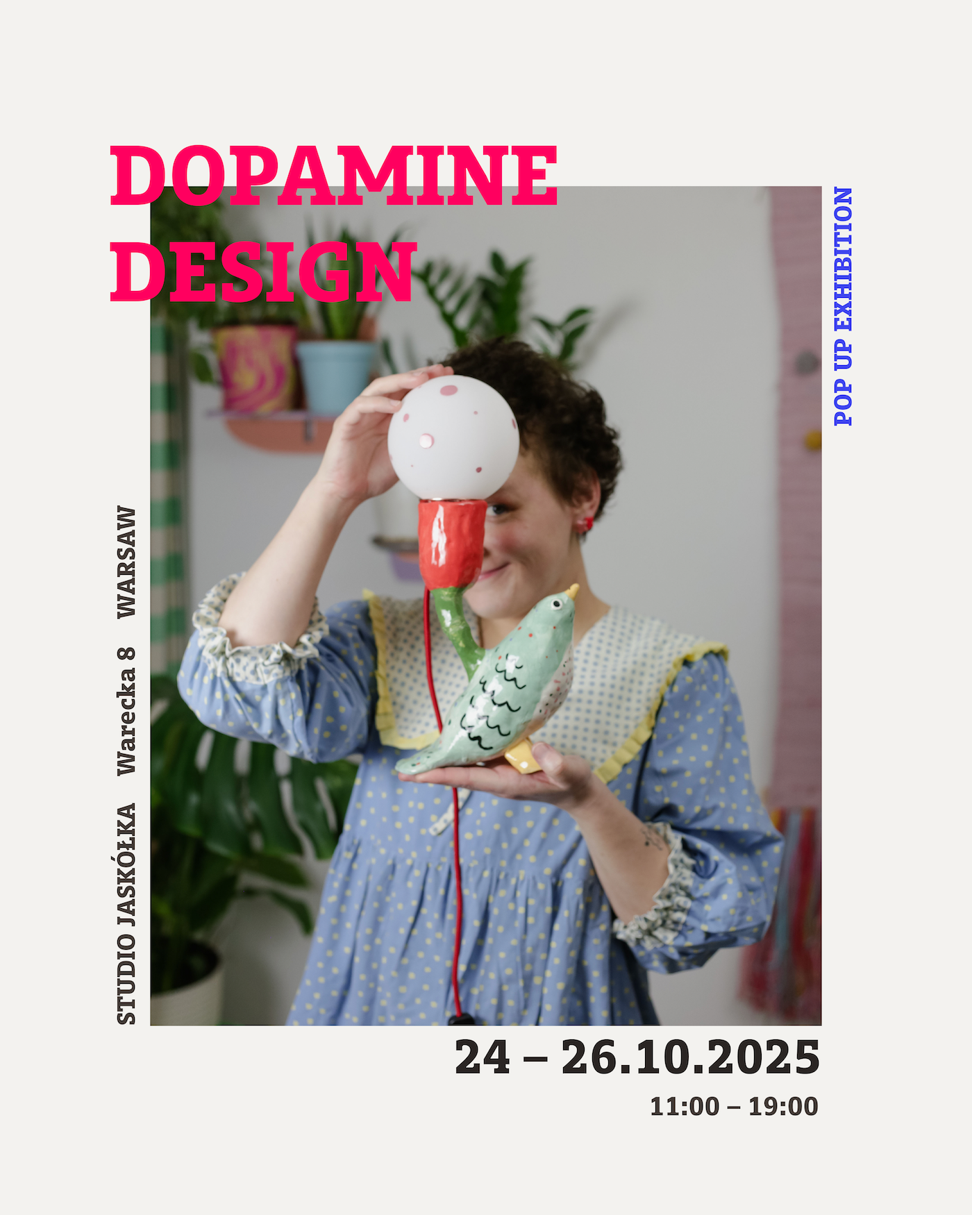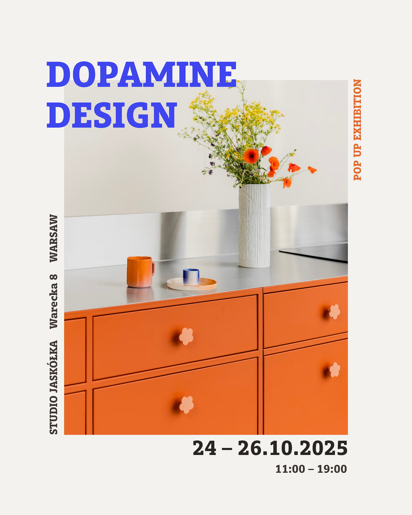 24–26 października 2025 roku w warszawskim Studio Jaskółka odbędzie się pop-up 'Dopamine Design’, trzydniowe wydarzenie poświęcone sile koloru i jego wpływowi na samopoczucie. To przestrzeń, w której estetyka spotyka się z neuroestetyką, a design staje się formą pozytywnej terapii wizualnej. Podczas pop-upu będzie można zobaczyć autorskie projekty Hogai, Desiva, Naczyniaki, Nodi Studio, TAR, tkaniny Tartaruga, IBelieveInPaper, Studio Jaskóła – twórców i marek świadomie sięgających po kolor jako narzędzie budowania emocji.