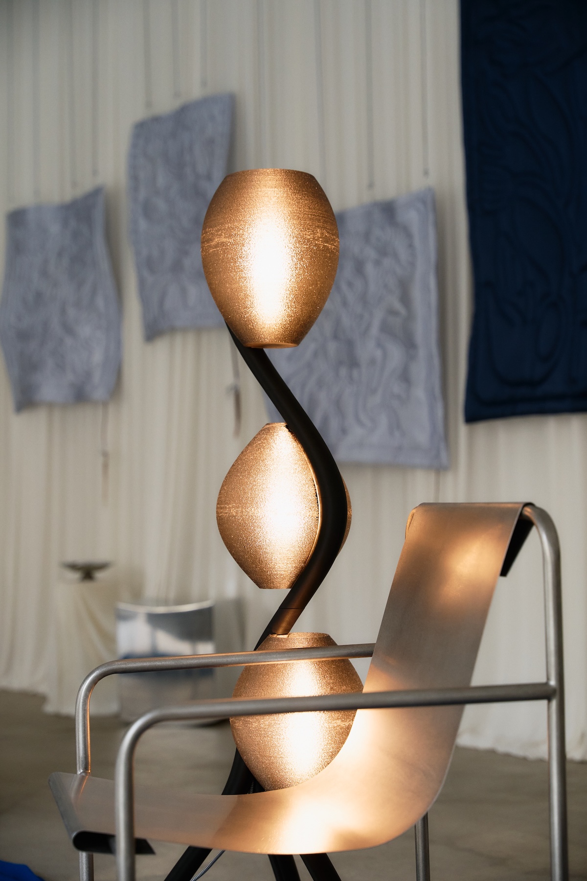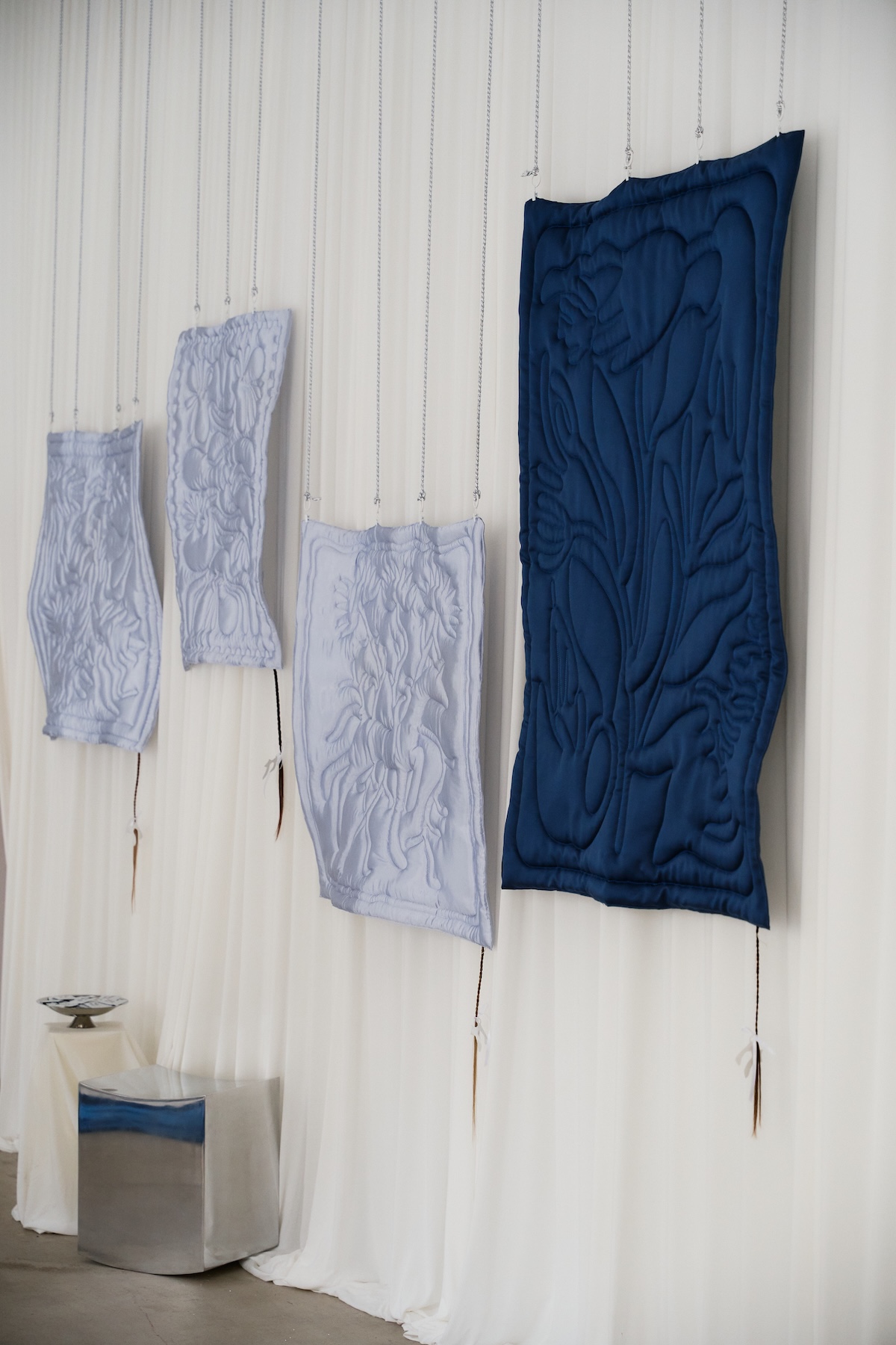 Na wystawie Silver Holidays w Studio Jaskółka powered by F5, uwagę przyciągają obiekty, które wymykają się definicji dekoracji. Są miękkie, niepokojące, intymne. To Zuga Soft, nowa marka tkanin stworzona przez Zuzannę Słomińską, Gabrielę Słomińską i Olgę Wyszyńską, które postanowiły zamknąć emocje, kontrasty i opowieści w materii.