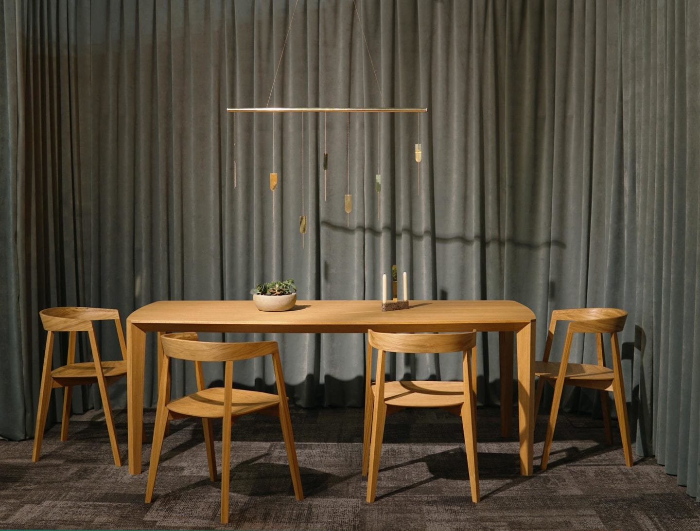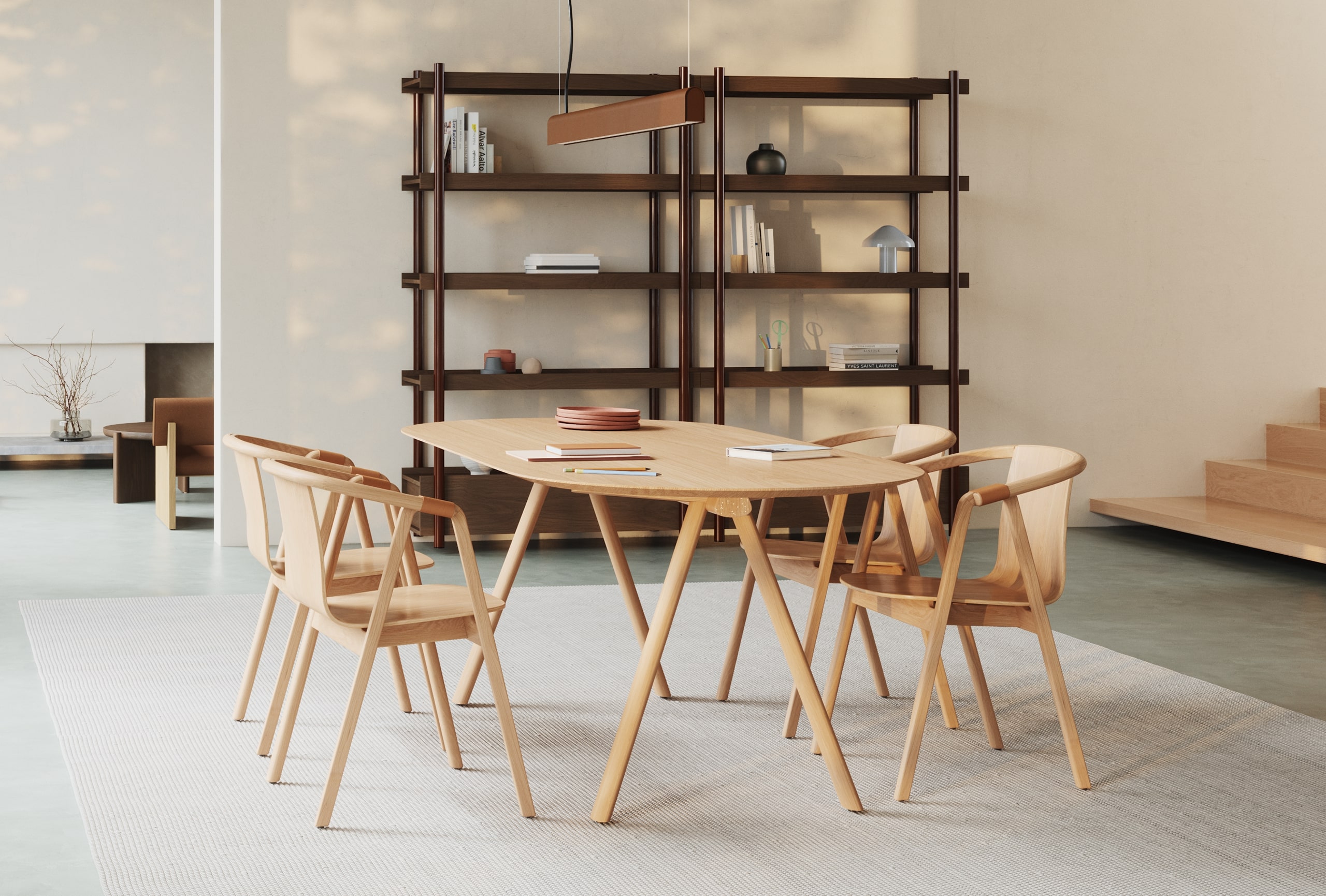 Stół Kos subtelnie przełamuje klasyczny schemat prostokątnego blatu. Delikatnie załamany dłuższy bok sprawia, że osoby siedzące obok siebie naturalnie zwracają się ku sobie – a rozmowa zaczyna płynąć swobodniej. To projekt, który pokazuje, że nawet niewielka zmiana linii może wpłynąć na dynamikę spotkania. Kos został zaprojektowany z myślą o relacjach – o tym, jak forma mebla może wspierać bliskość i uważność przy wspólnym stole.