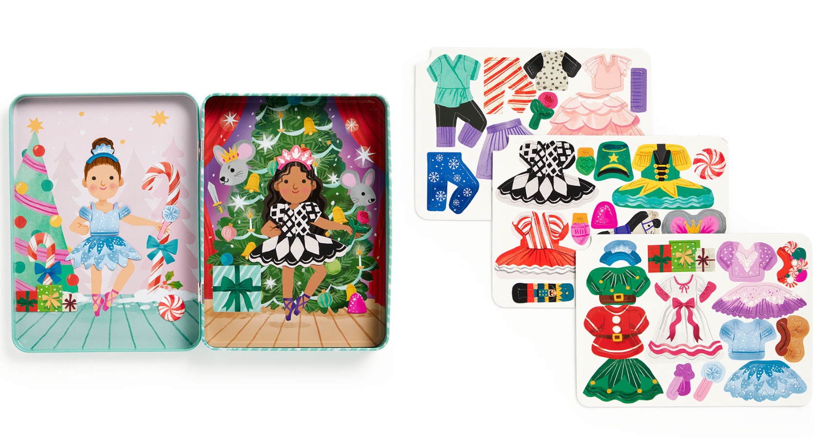 Świetnie sprawdza się także jako prezent świąteczny dla dzieci od 4 lat, zamknięta w poręcznym metalowym pudełku. W środku znajdują się dwie magnetyczne plansze z postaciami baletnic oraz zestaw magnesów z ubraniami i akcesoriami, dzięki którym dziecko może tworzyć własne stylizacje i scenki inspirowane klasyczną opowieścią. Układanka rozwija wyobraźnię, sprawność manualną i zachęca do swobodnej zabawy narracyjnej. To piękny, świąteczny prezent, który świetnie sprawdzi się w domu i w podróży. Zabawki znajdziecie na stronie www.bee.pl