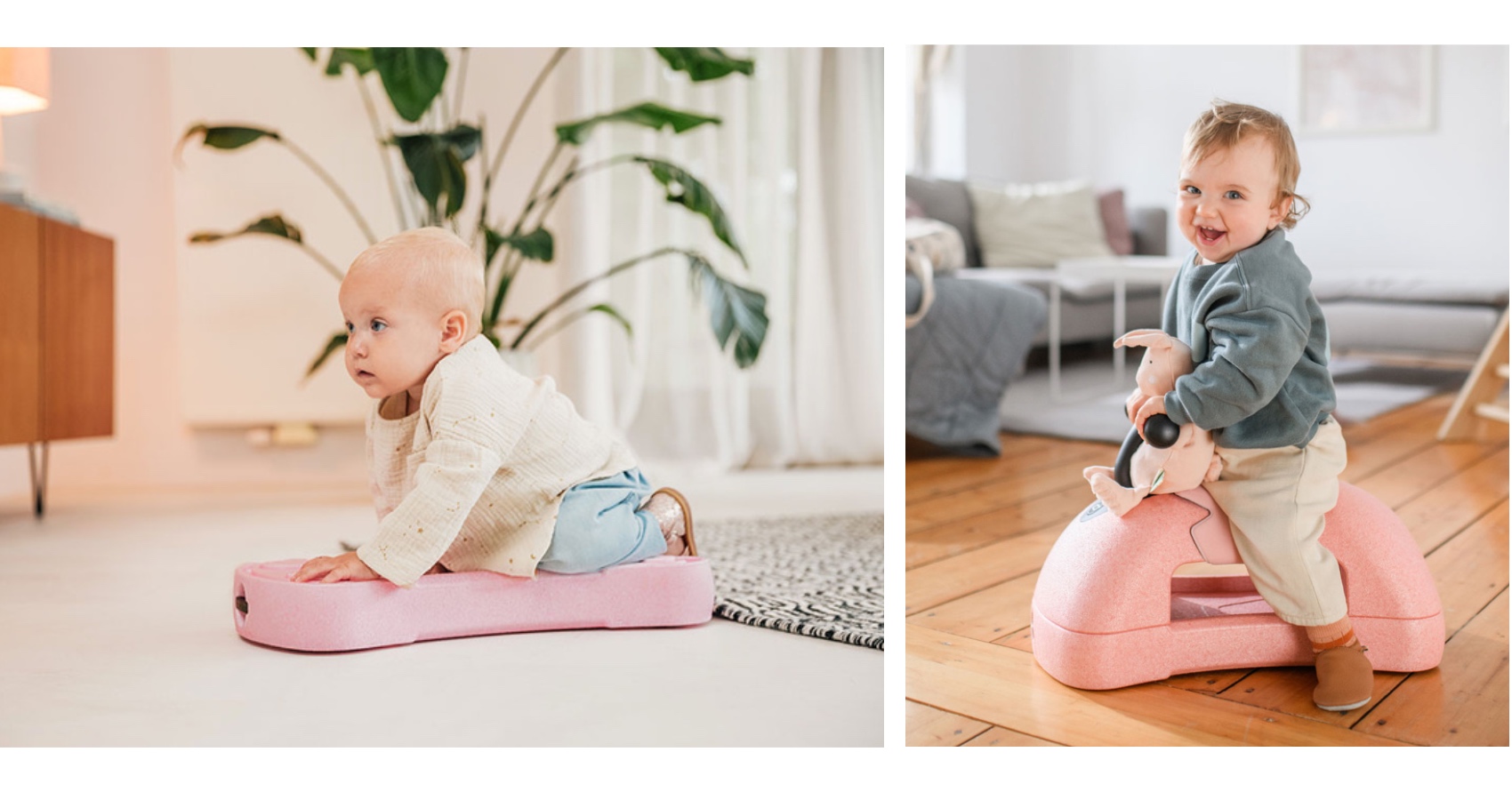 Jeździk My First 3w1 dla dzieci od 6. miesiąca życia. Zmienia się wraz z dzieckiem: od pchacza, przez klasyczny jeździk, po deskę na kółkach dla starszych dzieci. Wykonany z wytrzymałego materiału EPP, który amortyzuje wstrząsy i nie uszkadza mebli.