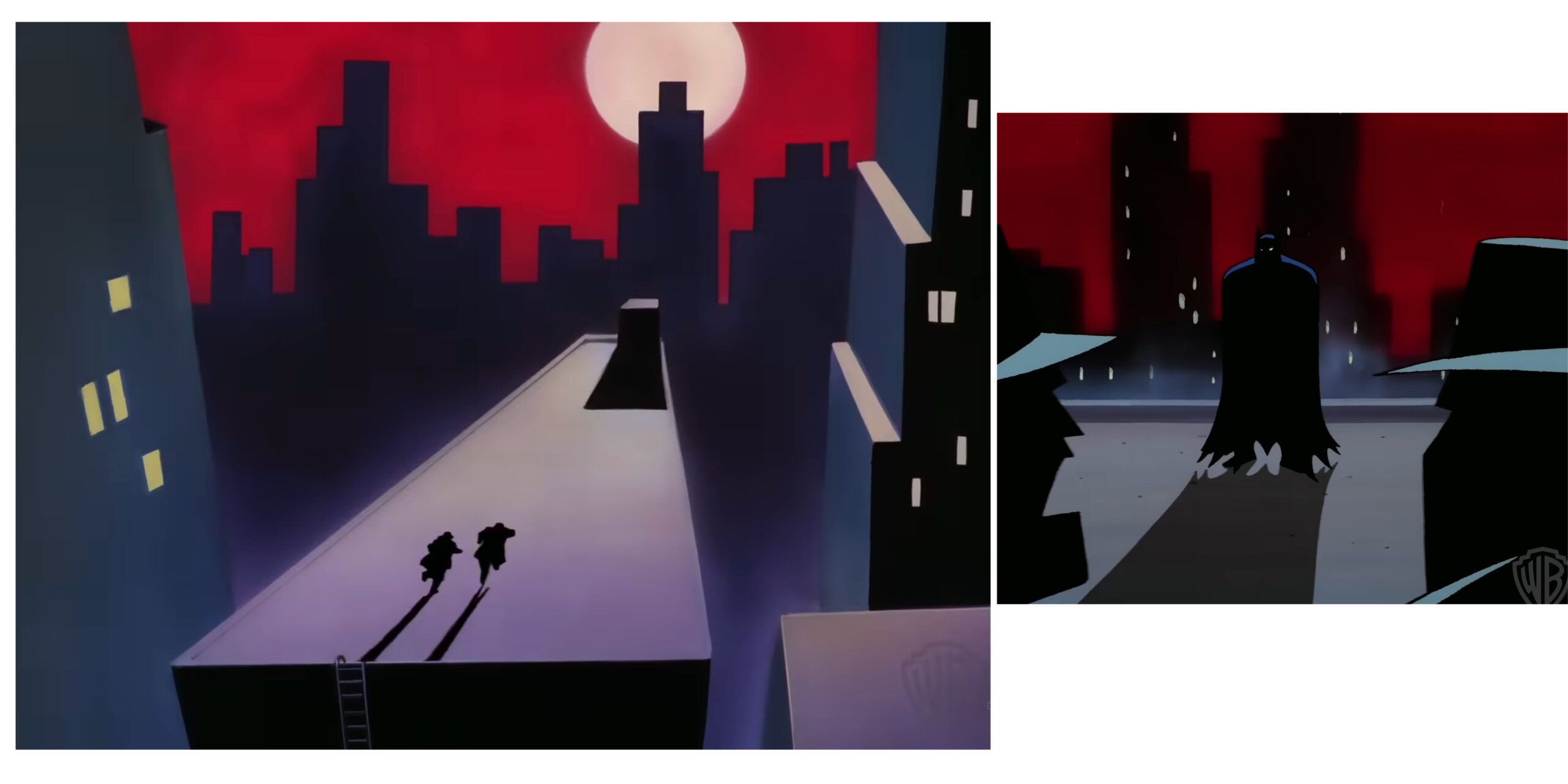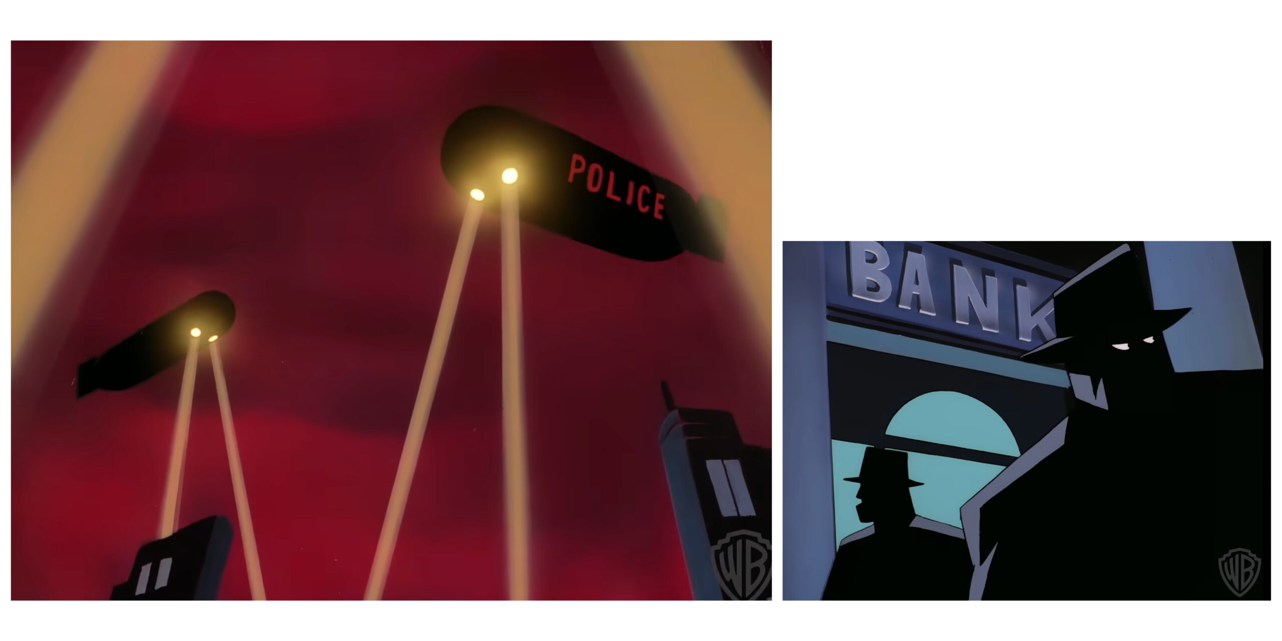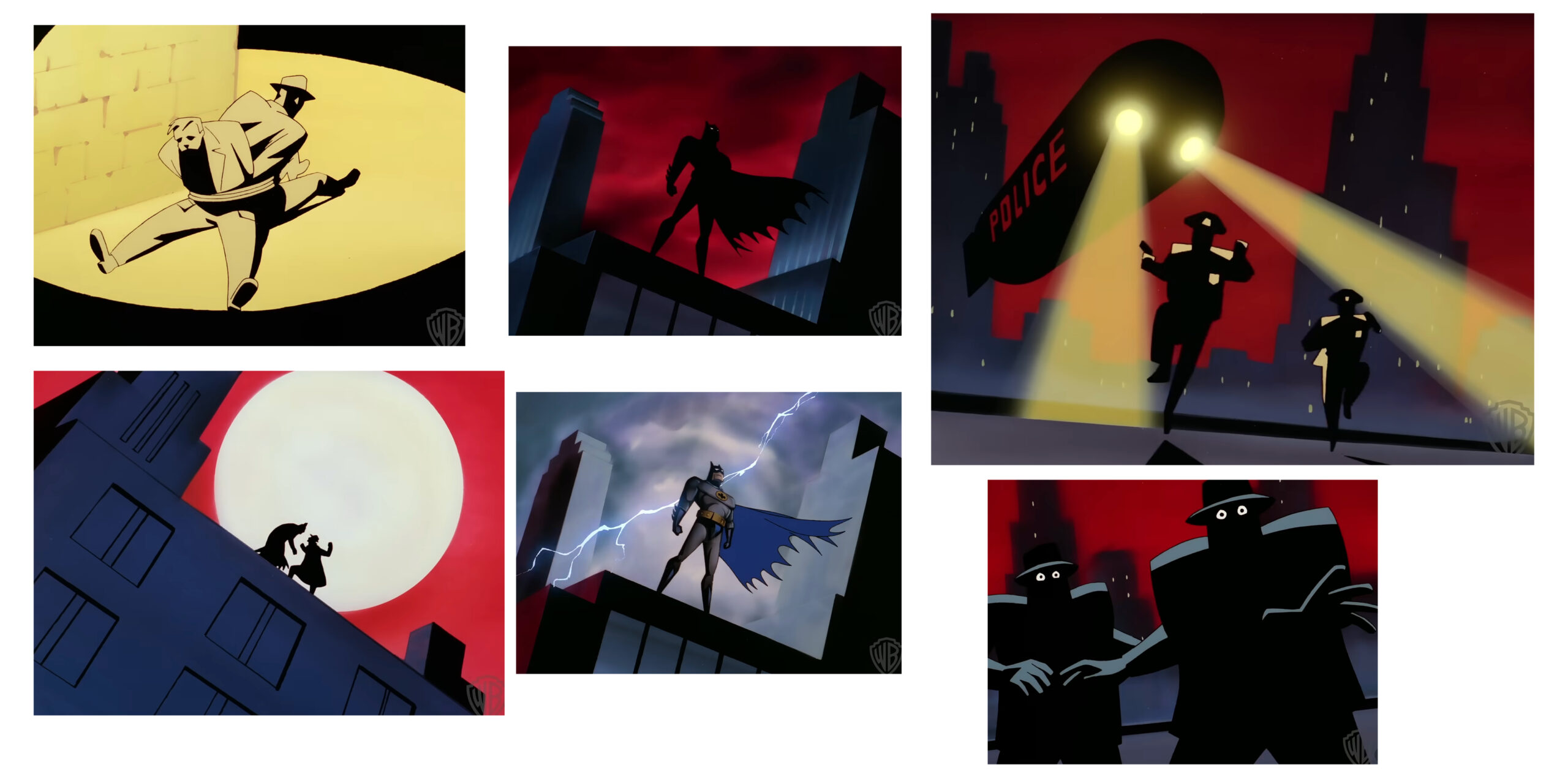 Styl określany jako Dark Deco, rozwijany przez Bruce Timm i Eric Radomski, był czymś radykalnie innym niż ówczesna telewizja dla dzieci. Gotham nie było kolorową makietą, tylko ciężkim, industrialnym miastem inspirowanym art deco i filmem noir. Czarne tła malowane na papierze zamiast białego podkładu, ograniczona paleta barw, ostre kontrasty i geometryczne uproszczenia postaci stworzyły estetykę, która do dziś wygląda świeżo.