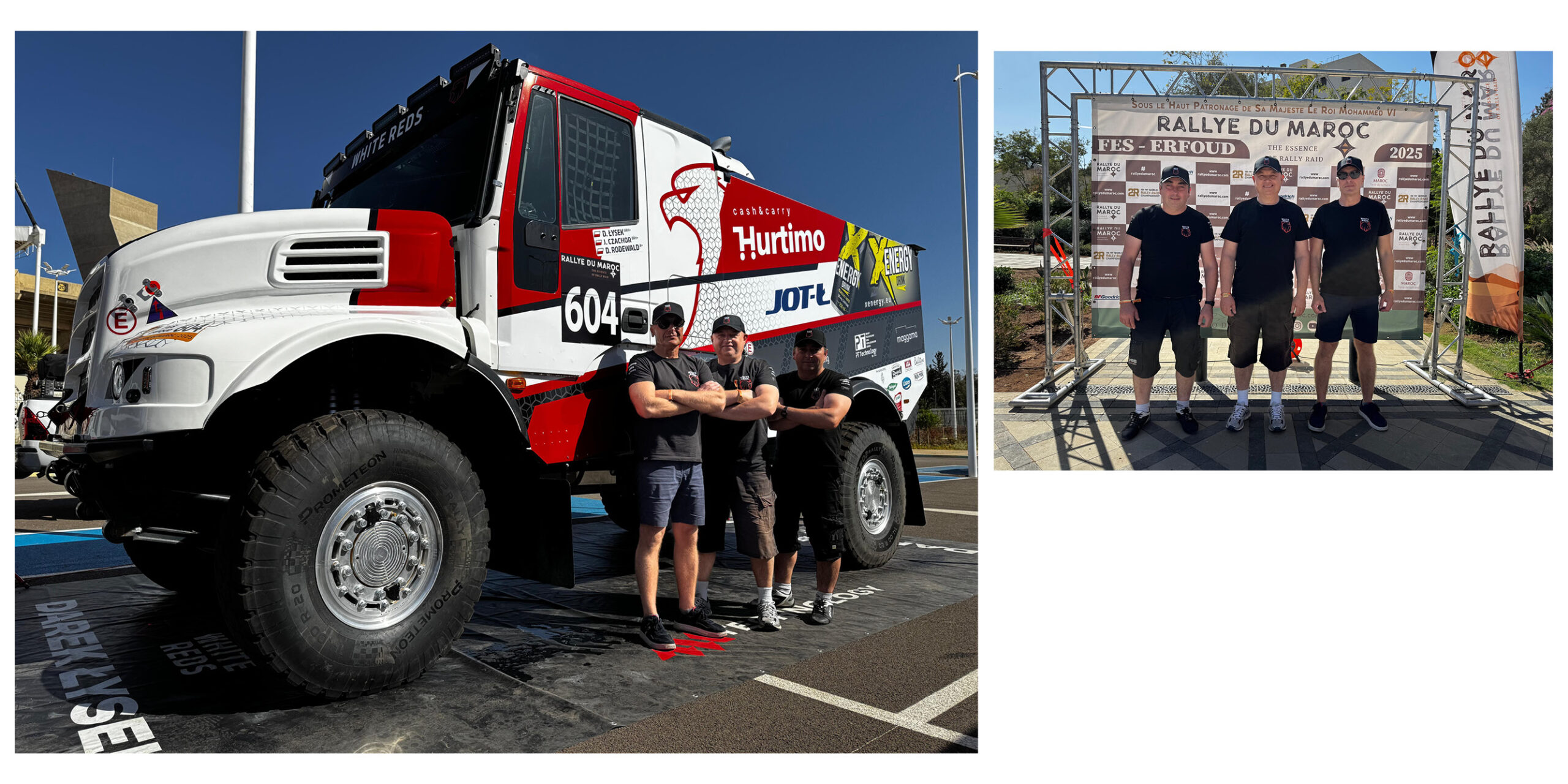 Oprócz Dąbrowskiego do Rajdu Maroka szykuje się też Hurtimo White Reds Racing Team, debiutanci na arenie międzynarodowej w kategorii samochodów ciężarowych T5.1 Trzyosobową załogę teamu stanowią: Darek Łysek, Jacek Czachor Darek Rodewald. Darek Łysek to pomysłodawca projektu i zarazem kierowca, który aktywnie reprezentuje Polskę w rajdach w kategorii T5. Czachor wielokrotnie startował w Rajdzie Dakar, dwukrotnie zdobywał mistrzostwo świata FIM w motocyklowych rajdach Cross Country, a teraz wcieli się w rolę pilota. Z kolei Rodewald, jako mechanik pokładowy i konstruktor pojazdów, ma na koncie trzy zwycięstwa w Rajdzie Dakar i dwa triumfy w Africa Eco Race. Trio White Reds Racing Teamu w Maroku wystartuje w najnowszej generacji rajdowej ciężarówce zaprojektowanej przez czeską firmę MM Technology – MMT EVO 4. Podczas Rajdu Dakar 2025 modele te zajęły pierwsze, drugie i czwarte miejsce w klasyfikacji ciężarówek.