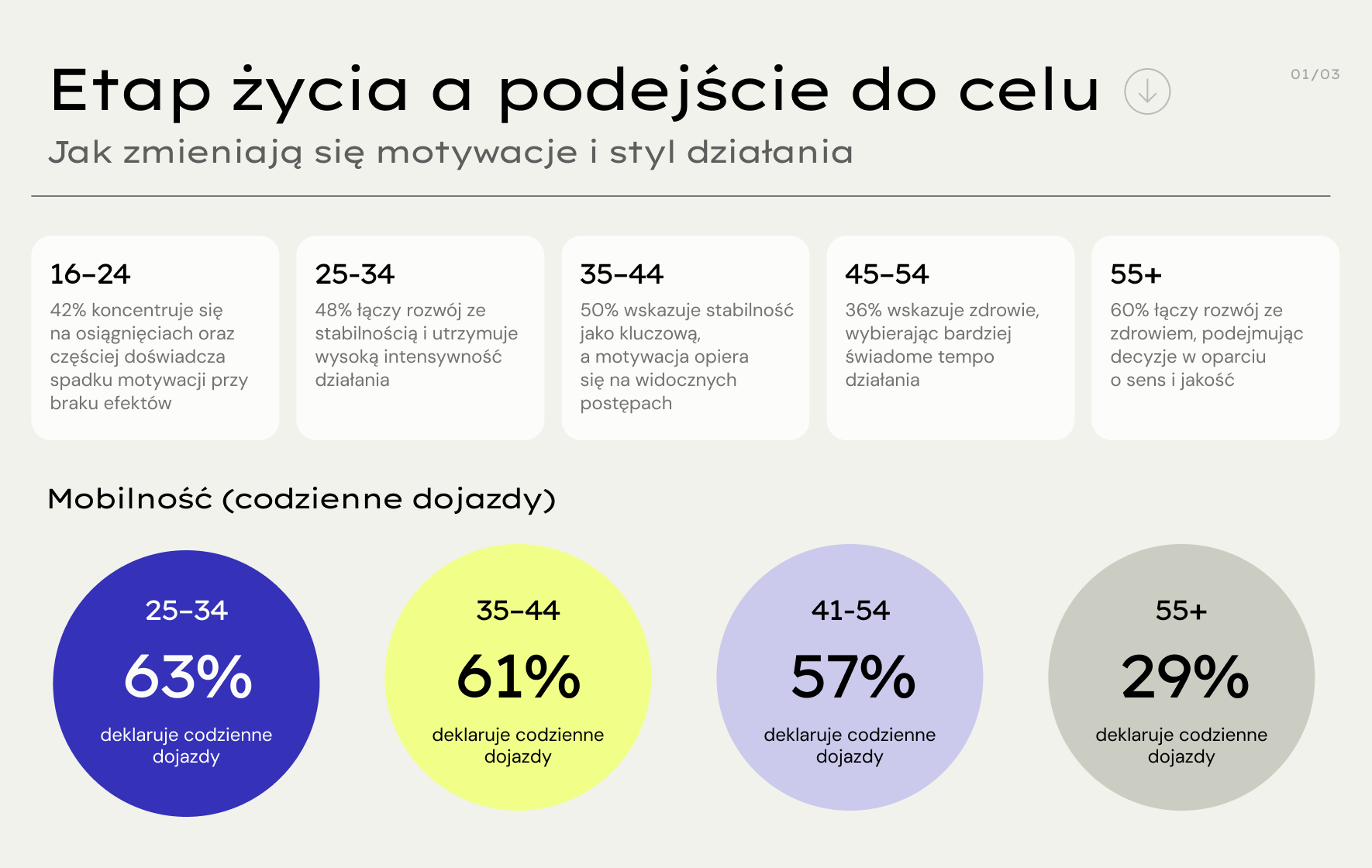 Raport dobrze pokazuje, że nie ma jednego modelu „radzenia sobie z życiem”. 20-latkowie chcą szybko, ale łatwo tracą motywację, gdy nie ma efektów, z kolei 30-latkowie zaczynają budować i decyzje mają sens tylko w szerszym planie. Polacy 40+ według badania stawiają na stabilność i przewidywalność, a ci 45+ redefiniują wszystko, dla nich mniej wyścigu, oznacza więcej jakości życia. Co ciekawe, coraz mniej liczy się „pokolenie”, a coraz bardziej moment, w którym jesteś.