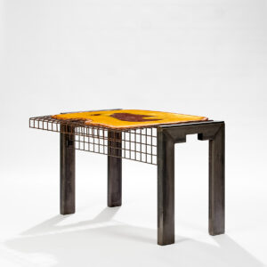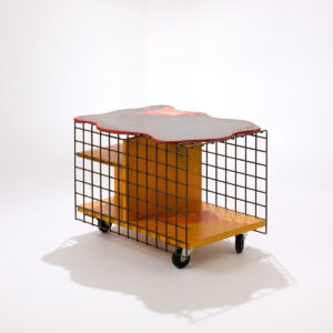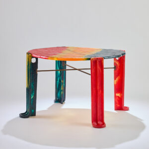 Jeśli jest jeden element, który definiuje Pesce, to materiał, a konkretnie żywica. Transparentna, nasycona pigmentem, nigdy identyczna. Każdy obiekt wyglądał, jakby był trochę „inny”, jakby miał własny charakter. W świecie produkcji masowej to było niemal polityczne stanowisko. Na wystawie w Paryżu widać to doskonale: drzwi, które wyglądają jak abstrakcyjne obrazy, stoły przypominające rzeźby w ruchu, powierzchnie, które nie są perfekcyjne i właśnie dlatego działają