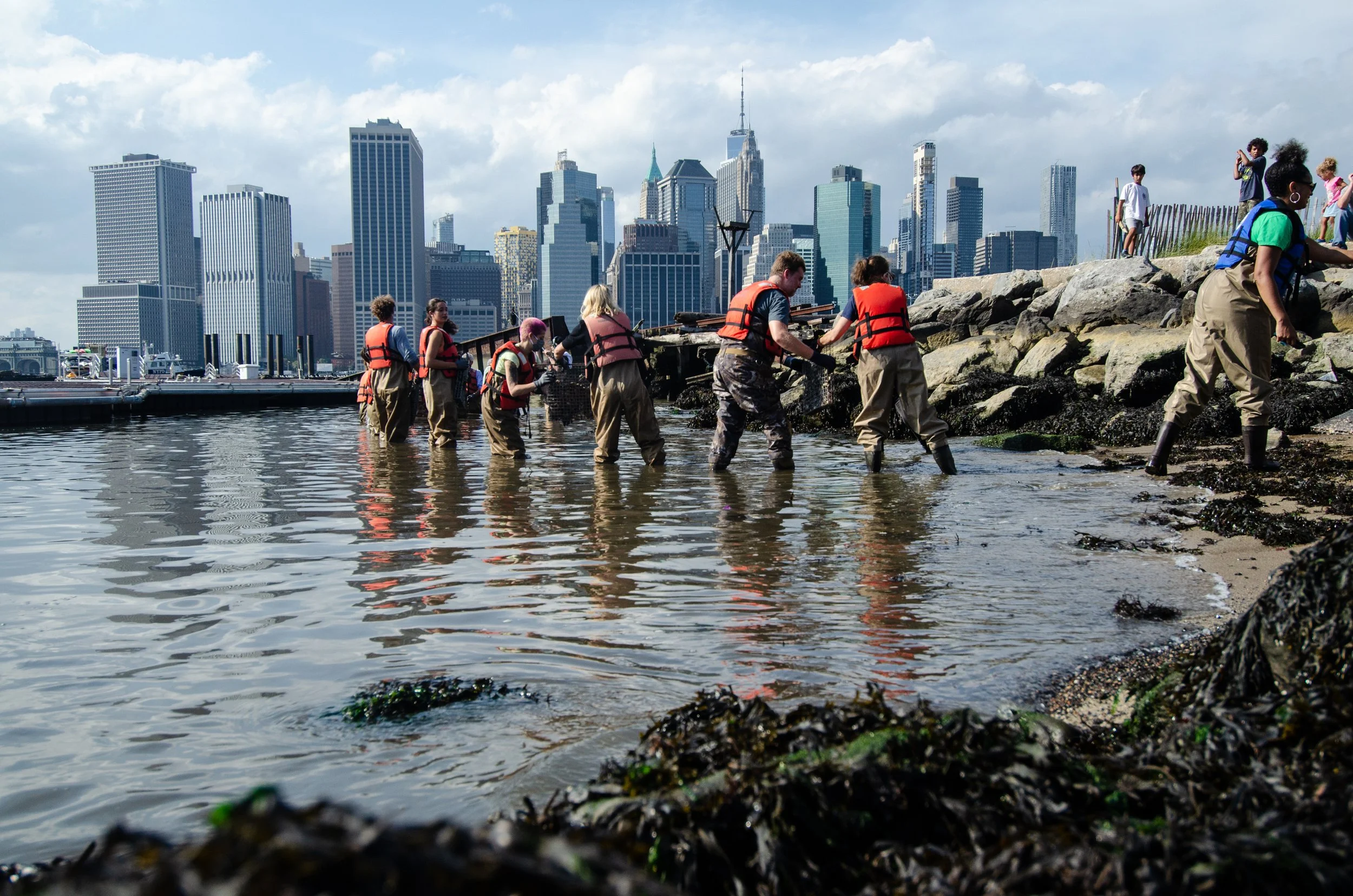 W Jamaica Bay prowadzi się odbudowę zniszczonych wysp i siedlisk traw morskich, co pozwala nie tylko chronić wybrzeże przed falami, lecz także poprawia jakość wody i sprzyja powrotowi bioróżnorodności. Na Staten Island powstaje projekt Living Breakwaters – system podwodnych konstrukcji przypominających rafy, które mają chronić brzeg przed falami, a jednocześnie tworzyć siedlisko dla ryb, małży i alg. Ogromne znaczenie ma też odbudowa raf ostrygowych. Jeszcze sto lat temu zatoka Nowego Jorku obfitowała w ostrygi, które filtrowały wodę i poprawiały jej przejrzystość. Nadmierne połowy i zanieczyszczenia niemal całkowicie je zniszczyły, ale dziś projekty takie jak Billion Oyster Project dążą do przywrócenia ich populacji.
