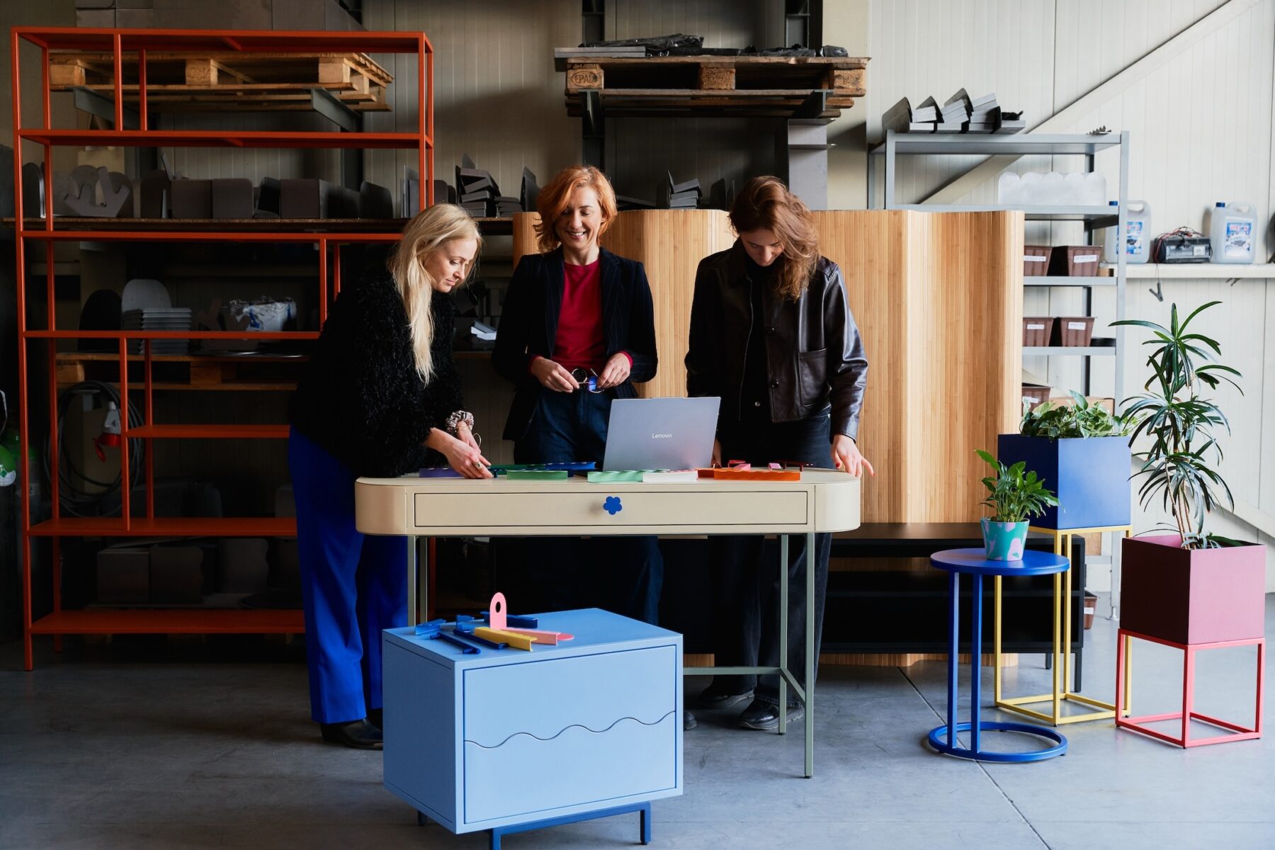 Aleksandra: Desiva jest częścią rodzinnej firmy założonej przez moich rodziców w latach 90′. Mamy świetną ekipę, wspaniałych i doświadczonych pracowników. Podczas pandemii poczułam, że duszę się w związanej z finansami pracy. Jednocześnie postanowiłam stworzyć kolorowe meble do mojego domu, bo okazało się, że na rynku nie ma czegoś takiego. Eksperymentowałam w zakładzie rodziców i sprawiało mi to coraz więcej przyjemności. Na social mediach wpadłam na Matyldę, która chciała zrealizować projekt będący częścią jej pracy magisterskiej. Zaproponowałam jej pomoc. Szybko okazało się, że jest nam razem po drodze.