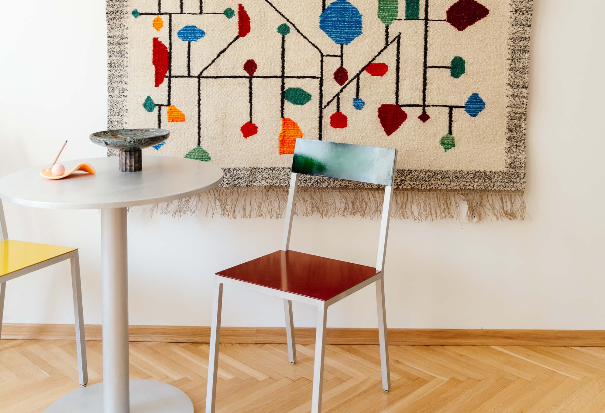 Dziś znów wracają także dzięki Przemkowi Cepakowi, który stoi za marką Splot Kilim. Każdy kilim Splotu to więcej niż tkanina – to opowieść spleciona z nici, historii polskiej tkaniny i i nowoczesnego spojrzenia. Tym razem Przemek Cepak sięgnął po ikoniczny wzór z lat 80. – kilim Wesoły.