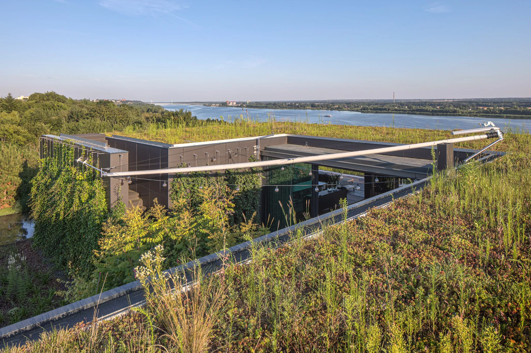 Założeniem projektu było nie tylko maksymalne wykorzystanie walorów widokowych, ale także ograniczenie wpływu inwestycji na środowisko. Przemyślane rozwiązania konstrukcyjne pozwoliły ograniczyć prace ziemne do minimum, a przemyślana orientacja budynku na działce sprzyja pasywnemu wykorzystaniu energii słonecznej.