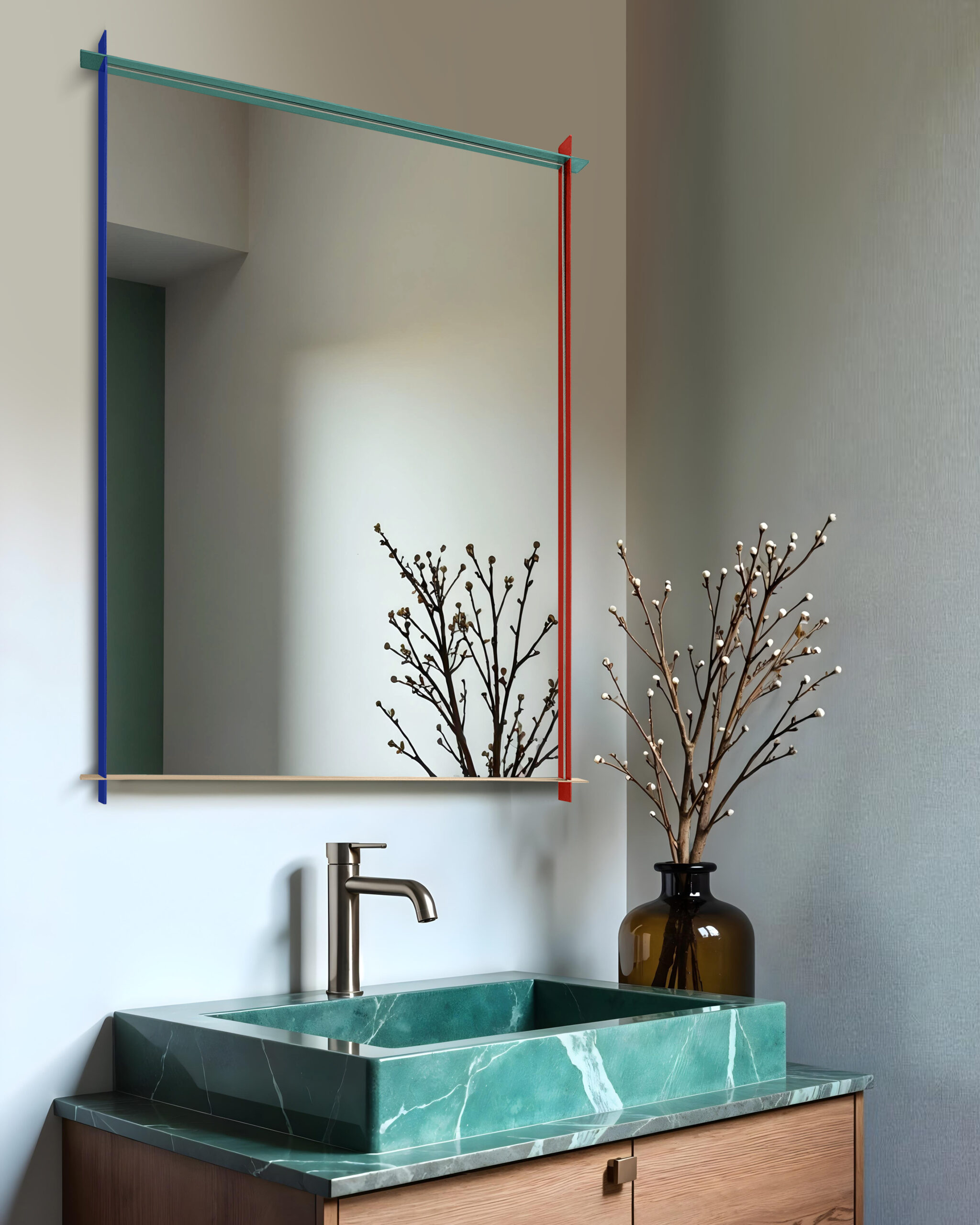 Jego projekty, choć precyzyjnie przemyślane i dopracowane w detalu, mają malarską jakość, potrafią być lekkie jak szkic, czasem ekspresyjne, ale zawsze wpisane w określoną przestrzeń. Kolor nie jest dla niego tylko dekoracją, traktuje go z szacunkiem właściwym malarzowi: jako nośnik nastroju, kontekstu, rytmu. W wersjach luster inspirowanych neoplastycyzmem sięga po barwne zestawienia, które przypominają abstrakcyjne kompozycje malarskie, to subtelny ukłon w stronę klasyków modernizmu.