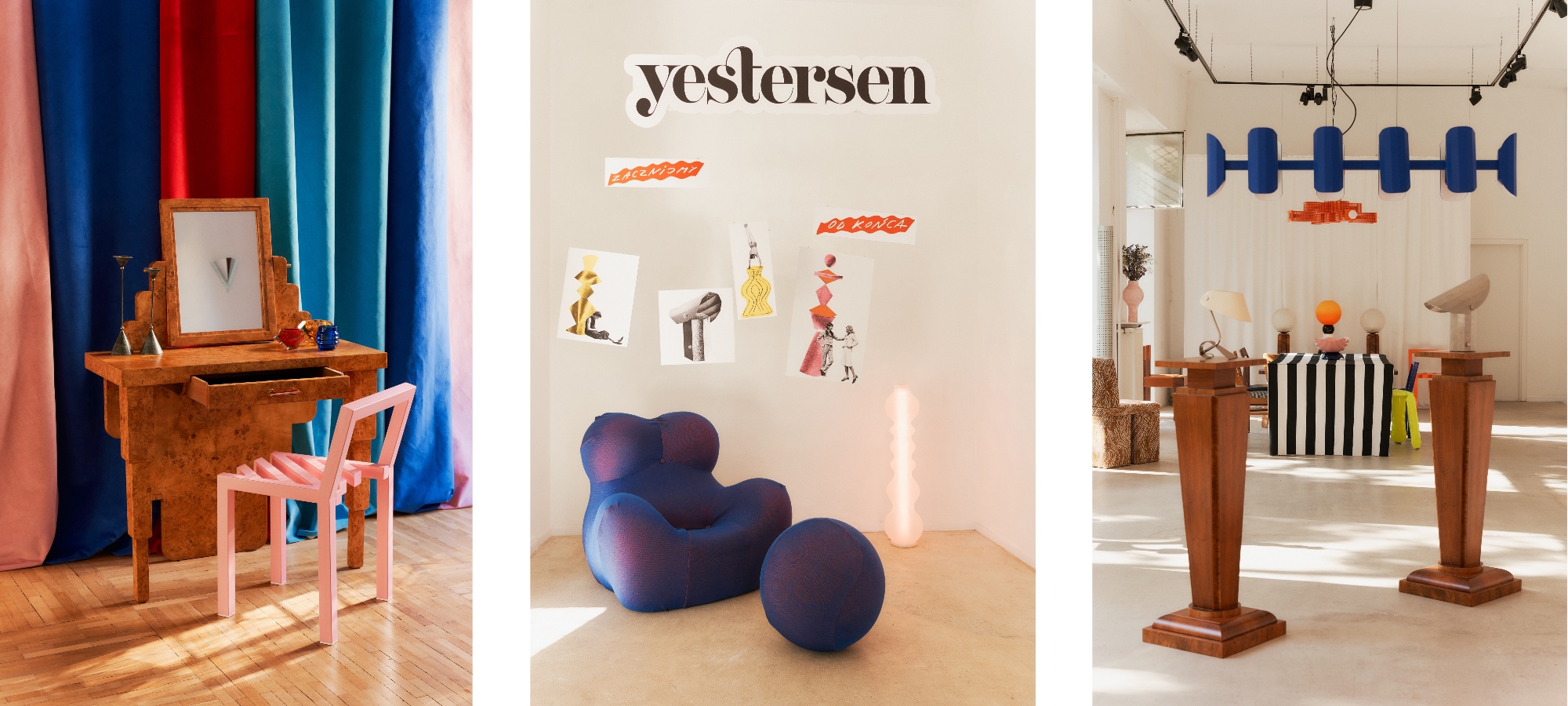 zaktualizowaną misją i nową formułą. Pod kierunkiem Karola Misztala (marketing) i Maćka Cypryka (operacje) wystawa yestersen dowodzi, że design to dialog czasu, a nie prosty rozwój. Część galeryjna pokazuje studium pojedynczych obiektów: stalowe ramy i geometryczne formy Art Déco, prowokacyjne cytaty postmodernizmu w jaskrawych barwach oraz subtelne echa mid- century modern.