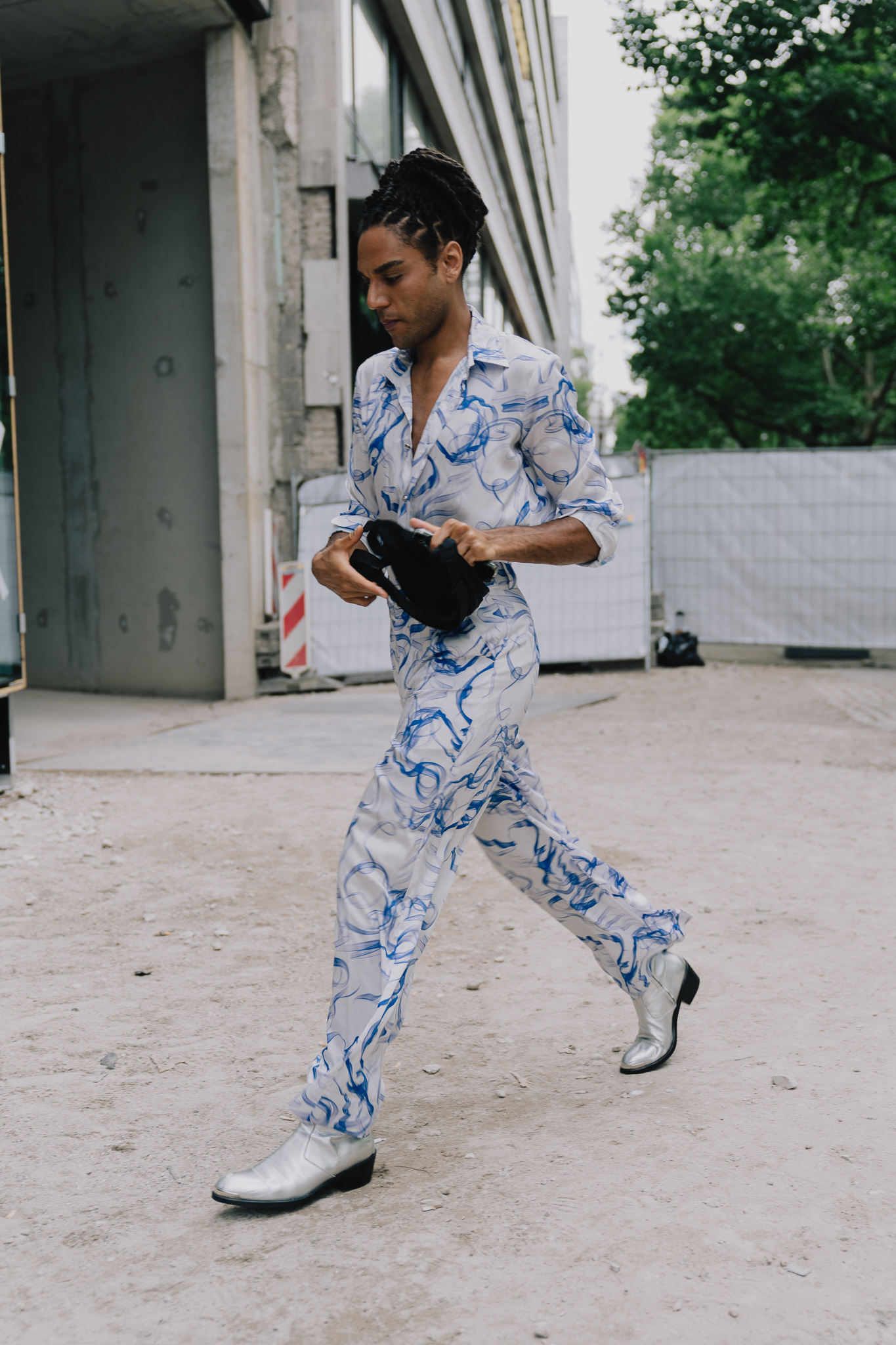 Mocny trend na ulicach Berlina? Absolutny rozkwit mody męskiej! Męskie stylizacje pełne były akcesoriów, biżuterii, torebek, obcasów, pasków.