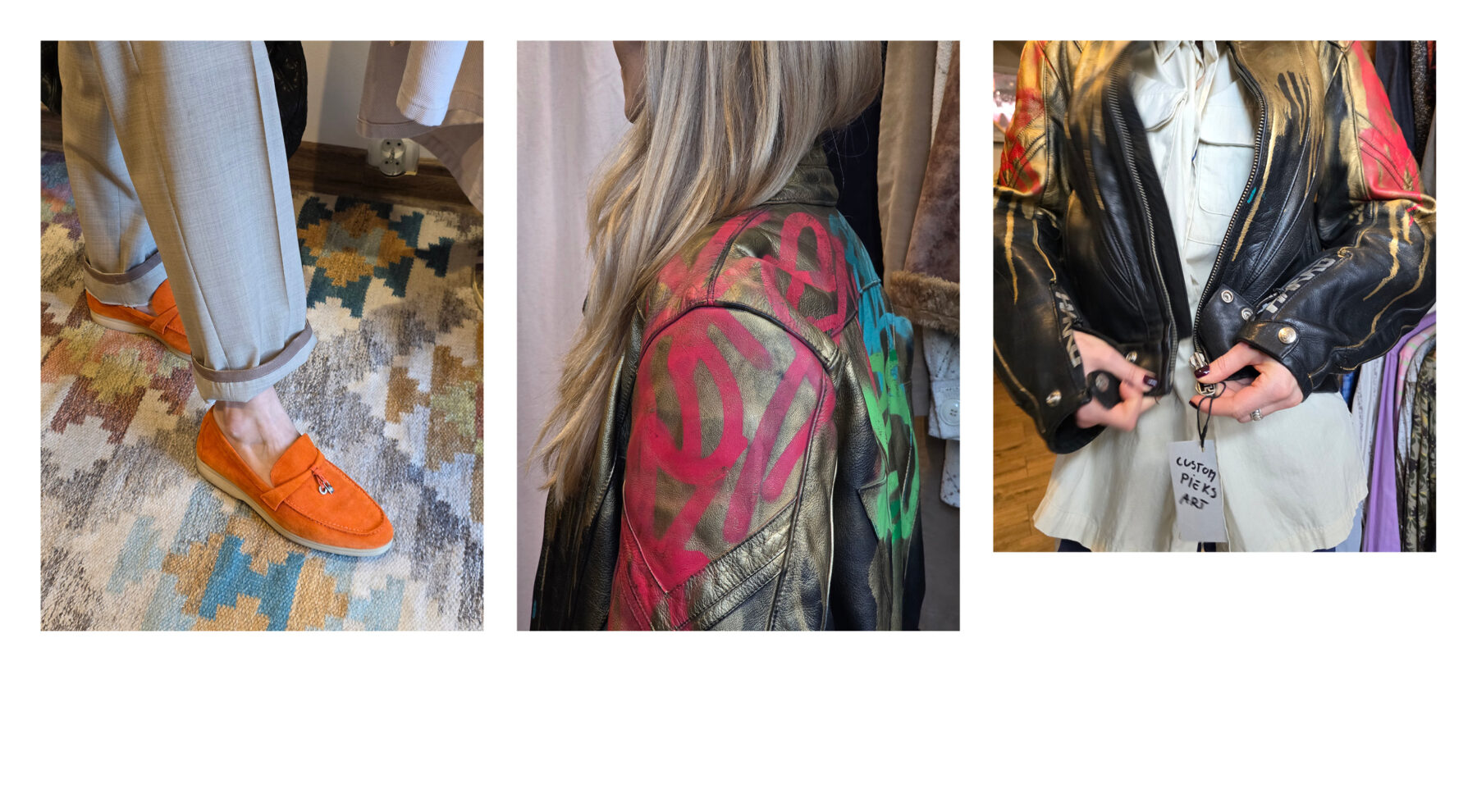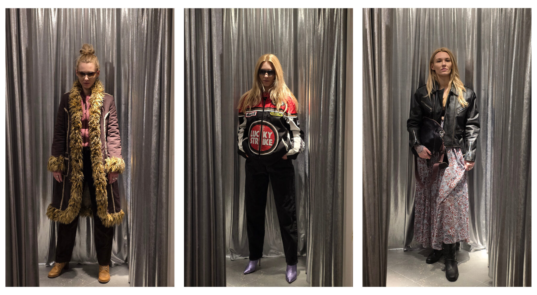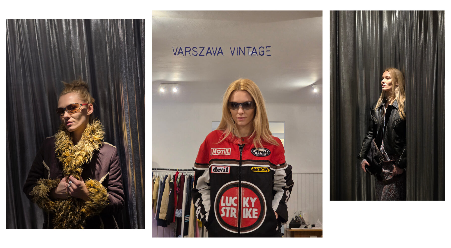 Kolejne miejsce to Varszava Vintage, które mieści się dosłownie kilka kroków dalej na ulicy Kopernika. Wchodzimy do środka i w oczy od razu rzuca nam się berliński sznyt tego shopu z wyraźną ekspozycją kurtek motocyklowych. Motocore to nadal bardzo obecny trend, bazujący na elementach profesjonalnej odzieży ze świata motorsportu. W połączeniu z luźnymi czarnymi spodniami, fioletowymi, błyszczącymi szpilkami high fashion i dodatkami Y2K nadaje wyrazisty, zdecydowany look, który z powodzeniem sprawdzi się na premierze nowej ramówki telewizji, jak i w sobotni ranek przed luzztrem. Kolejny zestaw robimy przy pomocy Gemini, wskazując jako trend popularny od kilku sezonów miejski styl kowbojski, doskonale zdefiniowany przez postać Beth z serialu Yellowstone. Oprócz dokładnej tekstowej analizy garderoby dostajemy moodboard tego stylu, a także zdjęcia pojedynczych itemów i tak zabieramy się za składanie tej stylizacji z dostępnych w sklepie elementów. Na bordową zapinaną koszulę i brązowe, zamszowe spodnie narzucamy brązowy kożuch z futrzanym kołnierzem. Uzupełnieniem stylizacji są wysokie, jasne kozaki. Trzeci zestaw to coś uniwersalnego czyli czarna, skórzana ramoneska i długa wzorzysta sukienka, idealnie wpisujące się w estetykę wiecznie młodego rock-romantic. Jakbyśmy tego nie nazywali soft grunge czy romantic biker to idealna kompozycja na weekendowe śniadanie połączone ze spacerem po mieście.