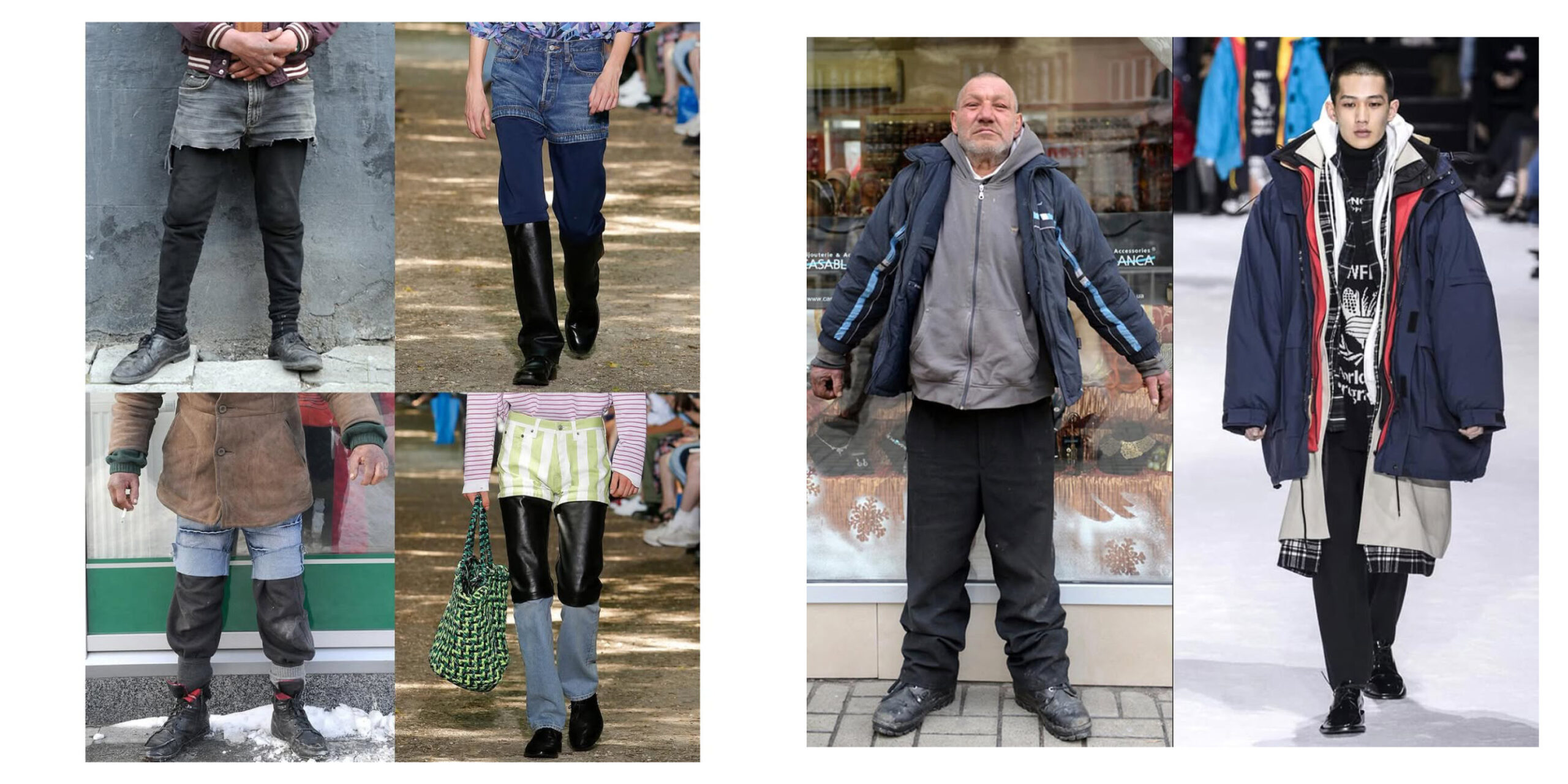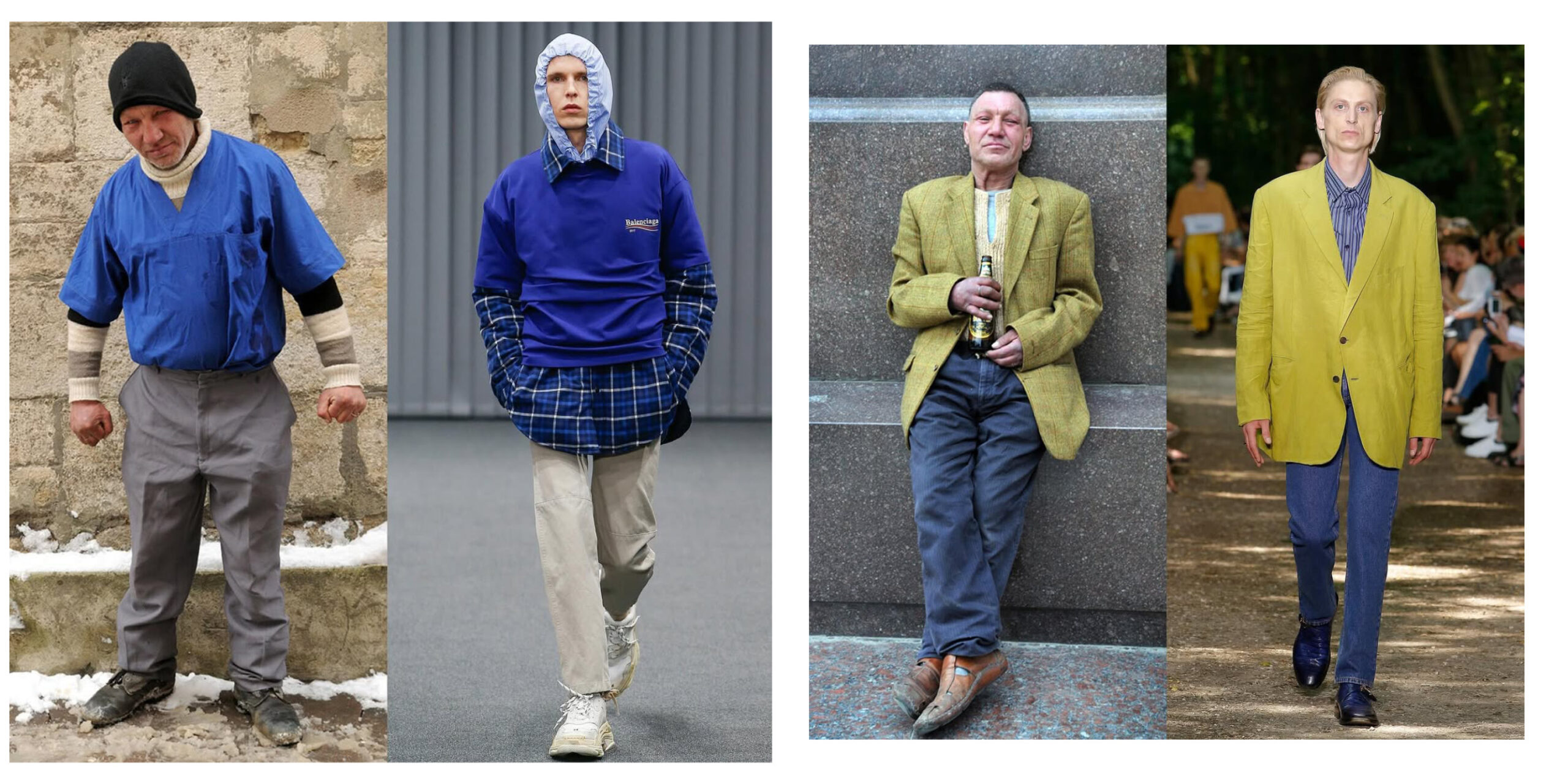 Fenomen marki Balenciaga, szczególnie pod kierownictwem kreatywnym Demny Gvasalii, polega przede wszystkim na zdolności do przekładania surowych, niekonwencjonalnych estetyk, w tym inspirowanych modą uliczną i codziennością, na język luksusu. Demna Gvasalia widzi piękno w autentyczności i niekonwencjonalności. Elementy mody ulicznej, takie jak przeskalowane kroje, zużyte materiały czy warstwowość, są reinterpretowane w luksusowej estetyce. Ubrania, które mogą wydawać się inspirowane garderobą osób bezdomnych – zniszczone trampki, przeskalowane płaszcze czy nieoczywiste połączenia kolorów – są przekształcane w produkty, które wyrażają indywidualność i przekraczają granice tradycyjnego pojmowania mody. Stąd zdarzają się aż nazbyt bezpośrednie inspiracje modą bezdomnych, jak to było w przypadku Slavika ze Lwowa, który stał się nieoficjalną ikoną mody.