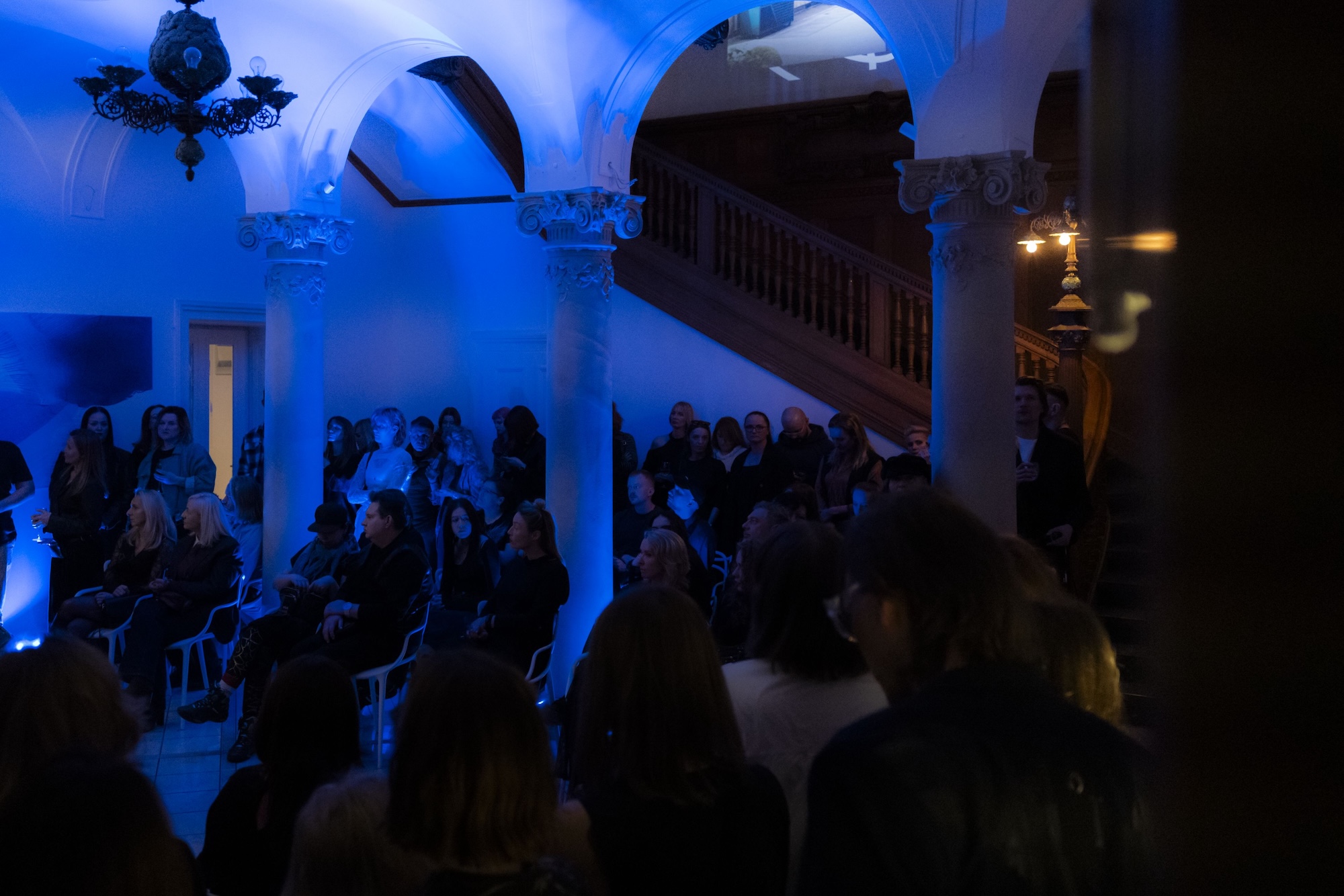 Wieczór nie był tylko pokazem – to było doświadczenie synestetyczne. Przestrzeń pałacyku stała się żywą galerią – modelki przemieszczały się między salami, tworząc choreografię splecioną z obrazami Urszuli Wilk, mappingiem świetlnym i ścieżką dźwiękową autorstwa norweskiej manufaktury NNNN. Muzyczne dopełnienie zapewniły Alicja Aksamit i Joanna Dobrakowska, łącząc elektronikę z operowym głosem w brzmieniu pełnym napięcia i czułości.