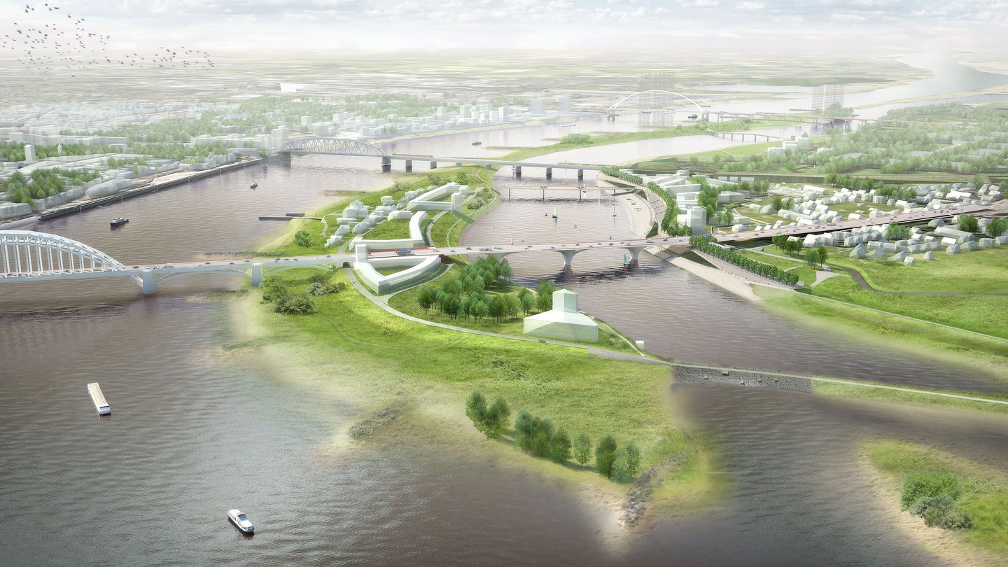 Na przykład w Nijmegen powstał kanał obejściowy (bypass channel) nad rzeką Waal pomiędzy historyczną częścią miasta i północnym brzegiem. To tworzy coś w rodzaju wyspy rzeczonej, parku rzeczonego, który pełni rolę zarówno ochronną przed powodzią, jak i rekreacyjną, ekologiczną. Projekt przewiduje, że pewne ścieżki czy przestrzenie będą okresowo zalewane – to się liczy, że woda przyjdzie, i że projekt się z nią liczy.