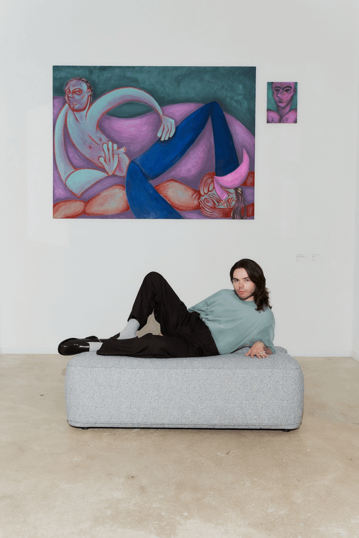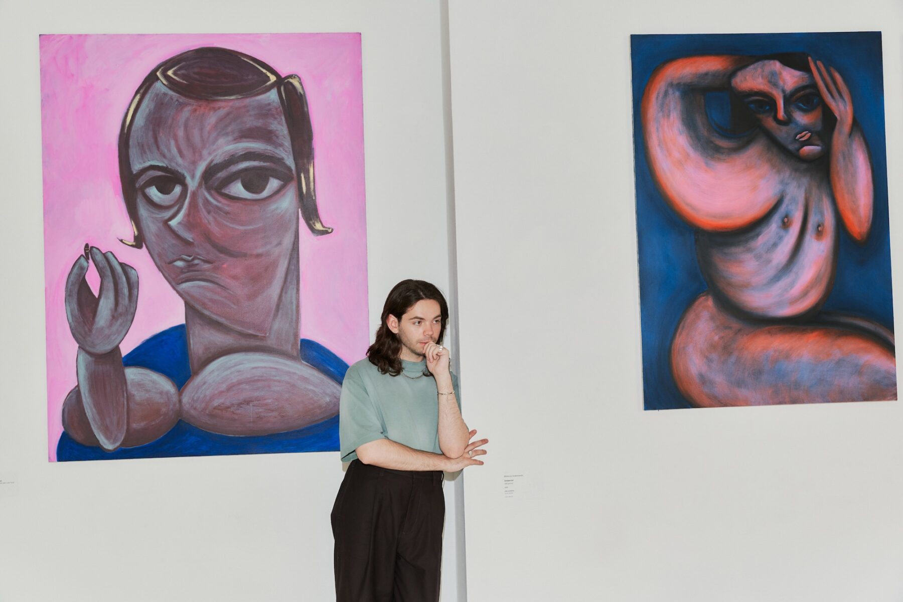 Szabłowski (ur. 2000), absolwent warszawskiej Akademii Sztuk Pięknych, od lat posługuje się własnym wizerunkiem jak lustrem, które rozbija i skleja na nowo w kolejnych pracach. Jego podejście do autoportretu to coś więcej niż technika – to intymna i performatywna praktyka, rodzaj ciągłej rozmowy z samym sobą i światem. Artysta zadaje pytania o tożsamość, męskość, queerowość, a także o lęk – ten własny i ten cudzy. Jego odpowiedzi przybierają postać kampowych straszaków i malarskich obiektów, które mają w sobie więcej czułości niż grozy.