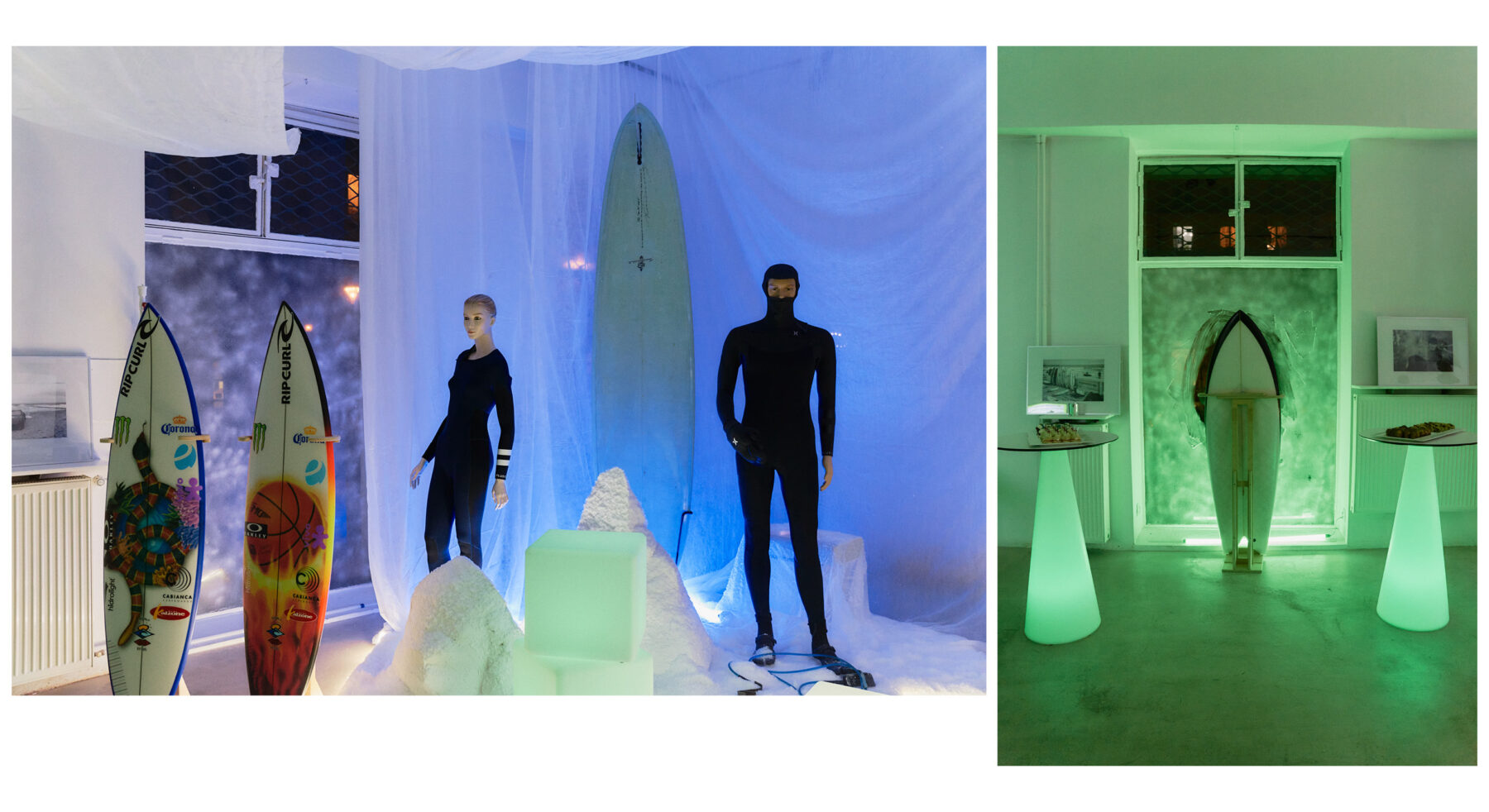 W specjalnie zaprojektowanej scenografii można oglądać deski surfingowe i kombinezony neopranowe.