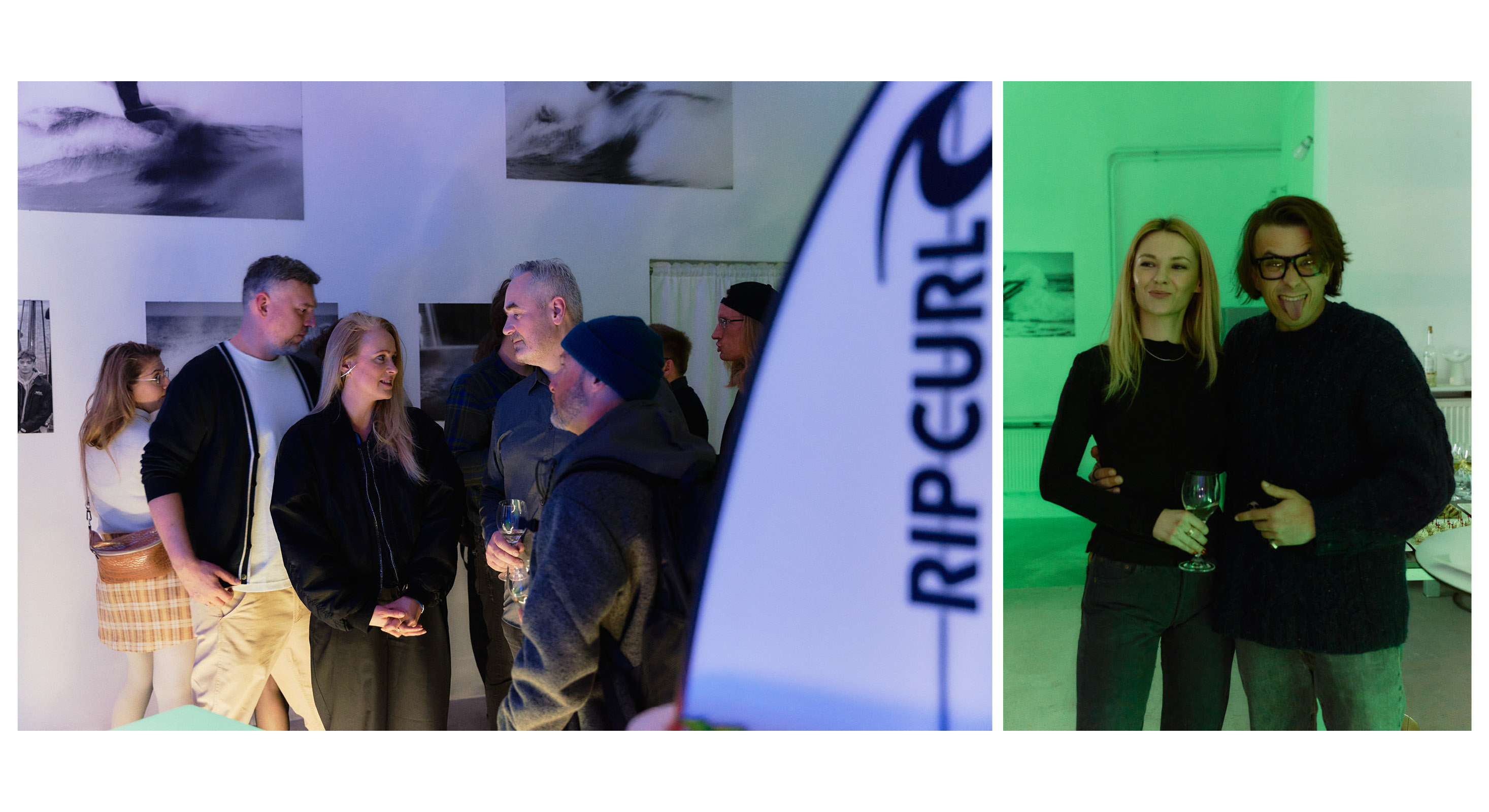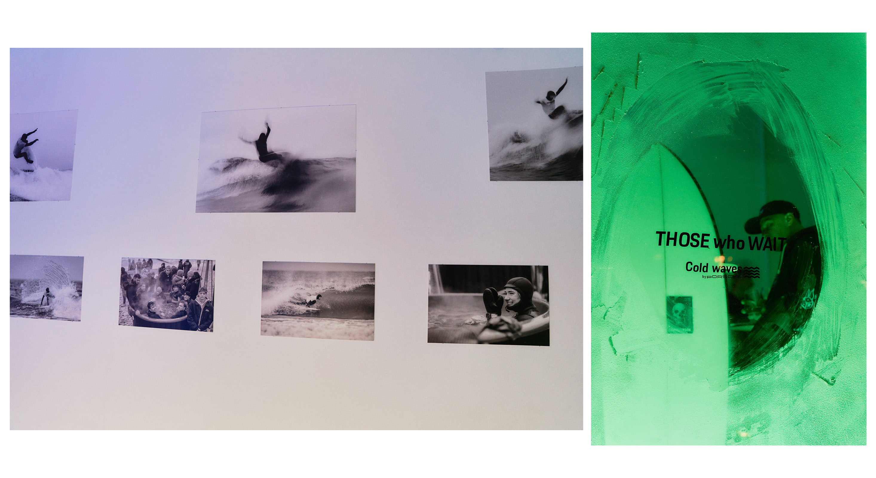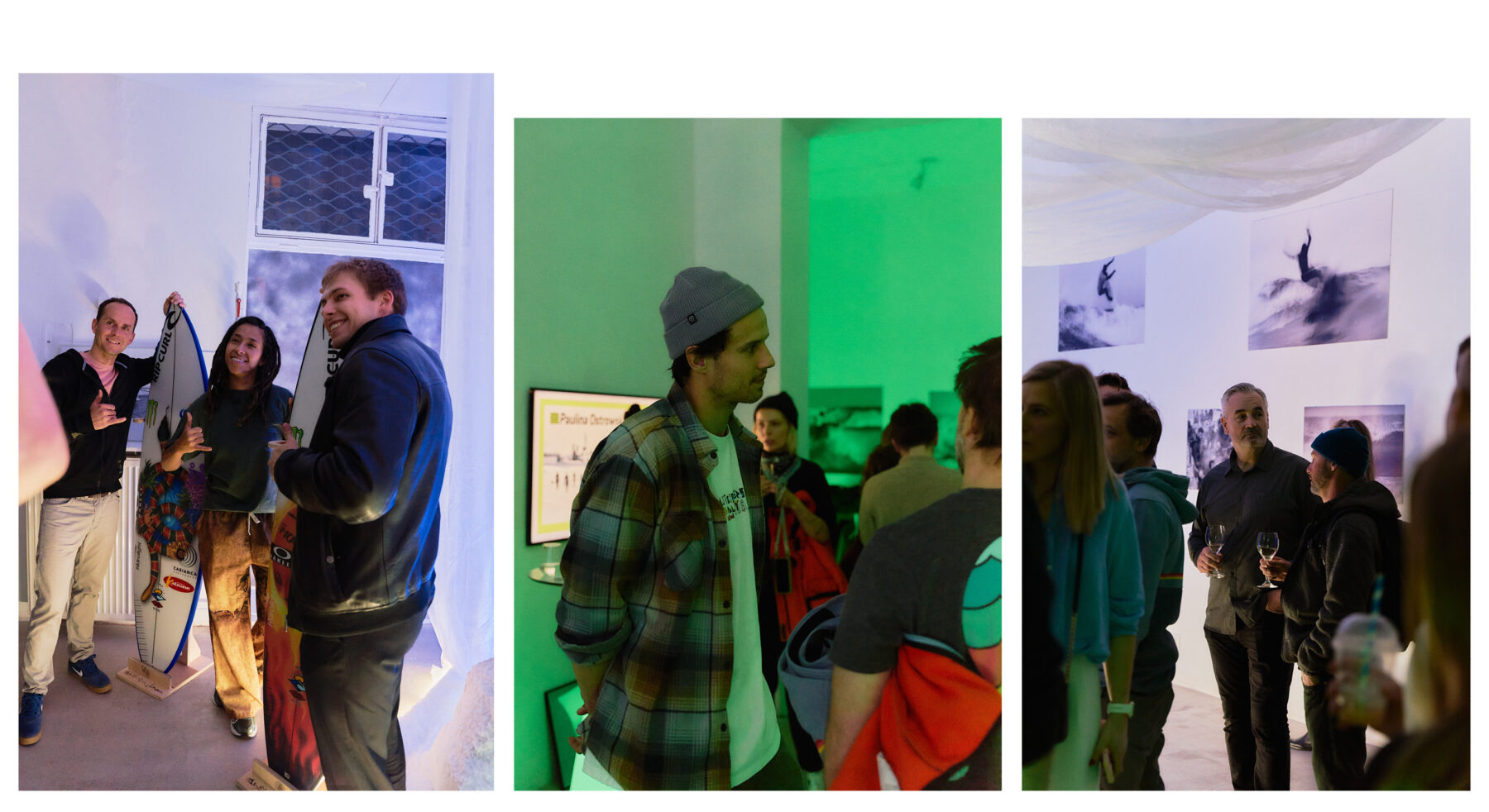 Na wystawie pokazaliśmy m.in. zdjęcia fantastycznych polskich fotografów – tych zawodowych i tych, którzy robią to z czystej zajawki. Znalazły się m.in. prace Krzyśka Jędrzejaka, pochodzącego z trójmiasta surfera i instruktora, zaangażowanego w organizację zawodów Cold Waves od pierwszej edycji, ale jak sam o sobie pisze przede wszystkim fotografa surfingowego i promotora bałtyckiego surfingu w wymiarze lokalnym i globalnym. Nikt jak on nie potrafi uchwycić surfera w ruchu i zespolić go z falą. Nie wiemy, gdzie kończy się żywioł, a zaczyna człowiek, a może tego podziału wcale tu nie ma i patrzymy na absolutną jedność surfera z falą? Zupełnie inny vibe mają zdjęcia Łukasza Nazdraczewa, kolejnego wyjadacza na polskiej scenie fotografii sportowej. Jak sam przyznaje, jest samoukiem, nie kończył żadnych szkół ani kursów. Pewnie teraz, dzięki gigantycznemu doświadczeniu i dorobkowi, sam mógłby takich lekcji udzielać. Ale jak przyznaje, woli dalej pstrykać. Jego prace mają zdecydowanie bardziej dokumentalny charakter, podkreślający umiejętności i performance, ale także pozwalają zajrzeć w świat surferów, którzy zeszli z fali, suszą rękawiczki, albo jedzą batona energetycznego. Kolejną artystką, której zdjęcia możecie oglądać jest Paulina Ostrowska, która zawodowo uczy na uniwersytecie przyszłych fizjoterapeutów sztuki masażu mózgu, a w wolnym czasie pędzi na Hel i daje nura w fotografię surfingową. Nie boi się sugestywnej edycji zdjęć i brawa dla niej za to, bo dzięki temu możemy spojrzeć na bałtycki surfing jej oczami. Zdjęcie surfera patrzącego na fale z motion blur dosłownie wciska. Czwartym fotografem na wystawie jest najmłodszy z nich Mateusz Krasuski, który dopiero zaczyna przygodę z fotografią surfingową, łącząc ją z podróżami. Szuka chwil, w których surferzy i fale są harmonią.