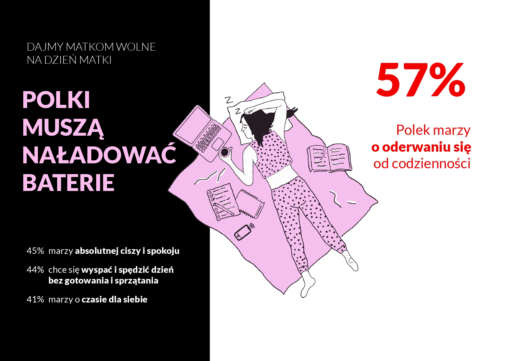 57% kobiet chce się oderwać od codzienności, a aż 96% uważa, że obowiązki domowe i opieka nad dziećmi powinny być dzielone sprawiedliwie między partnerów. Więc czemu nie zacząć od jednego dnia?