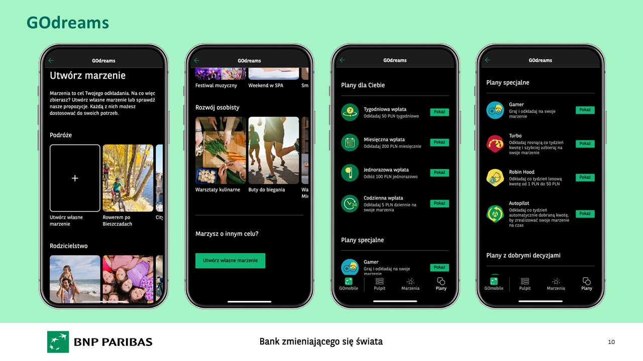 W tym miejscu pojawia się usługa GOdreams – platforma, która pomaga nie tylko odkładać środki na wymarzone cele, ale przede wszystkim – zdefiniować je. Zaprojektowana przez Bank BNP Paribas, aplikacja GOdreams dostępna w GOmobile oferuje Test Marzeń, który pomaga zrozumieć, czego tak naprawdę pragniemy. Bo zanim zaczniemy działać, trzeba… zadać sobie pytanie. GOdreams to odpowiedź na pytanie: 'czy da się połączyć oszczędzanie z uczuciami’. Okazuje się, że tak.