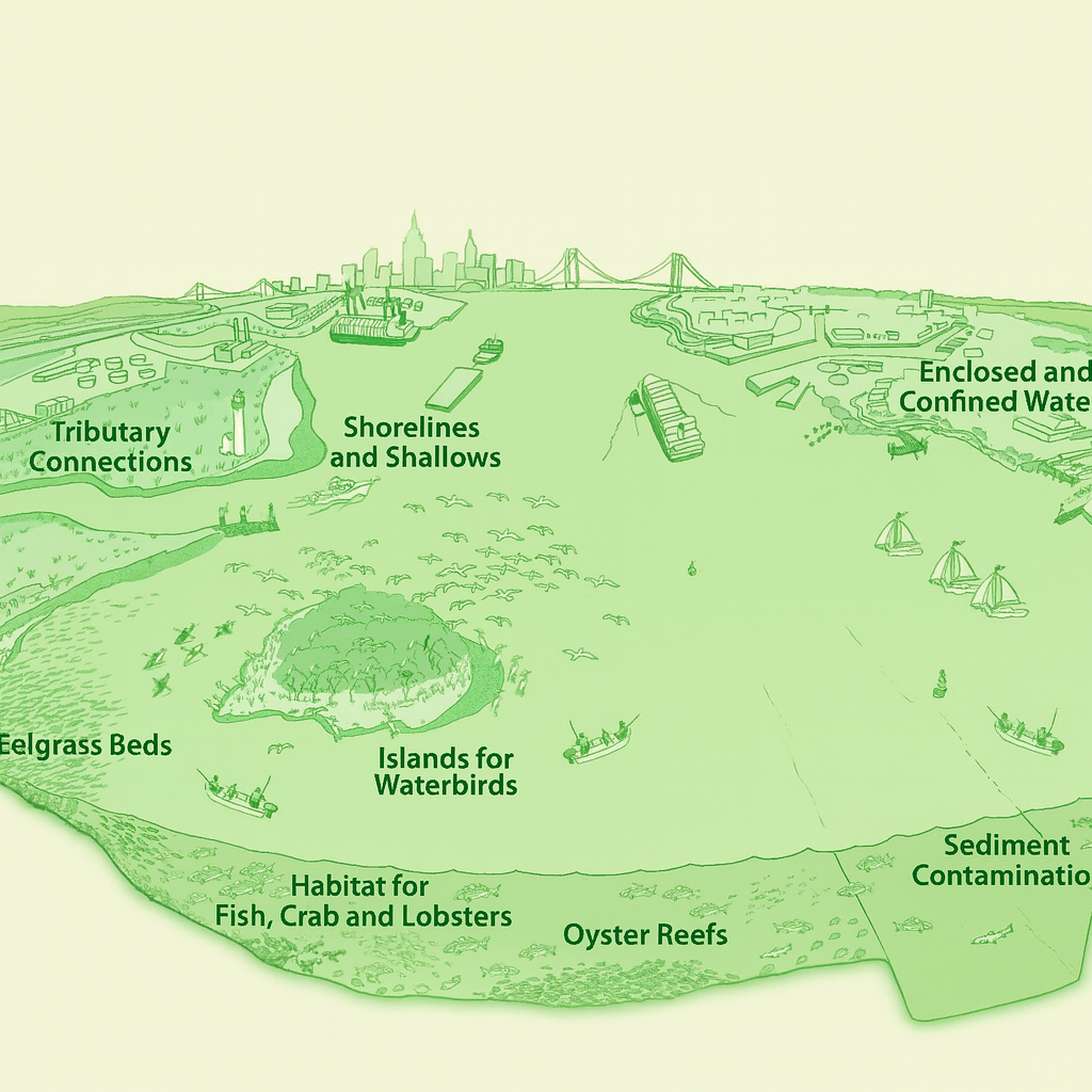 W Jamaica Bay prowadzi się odbudowę zniszczonych wysp i siedlisk traw morskich, co pozwala nie tylko chronić wybrzeże przed falami, lecz także poprawia jakość wody i sprzyja powrotowi bioróżnorodności. Na Staten Island powstaje projekt Living Breakwaters – system podwodnych konstrukcji przypominających rafy, które mają chronić brzeg przed falami, a jednocześnie tworzyć siedlisko dla ryb, małży i alg. Ogromne znaczenie ma też odbudowa raf ostrygowych. Jeszcze sto lat temu zatoka Nowego Jorku obfitowała w ostrygi, które filtrowały wodę i poprawiały jej przejrzystość. Nadmierne połowy i zanieczyszczenia niemal całkowicie je zniszczyły, ale dziś projekty takie jak Billion Oyster Project dążą do przywrócenia ich populacji.